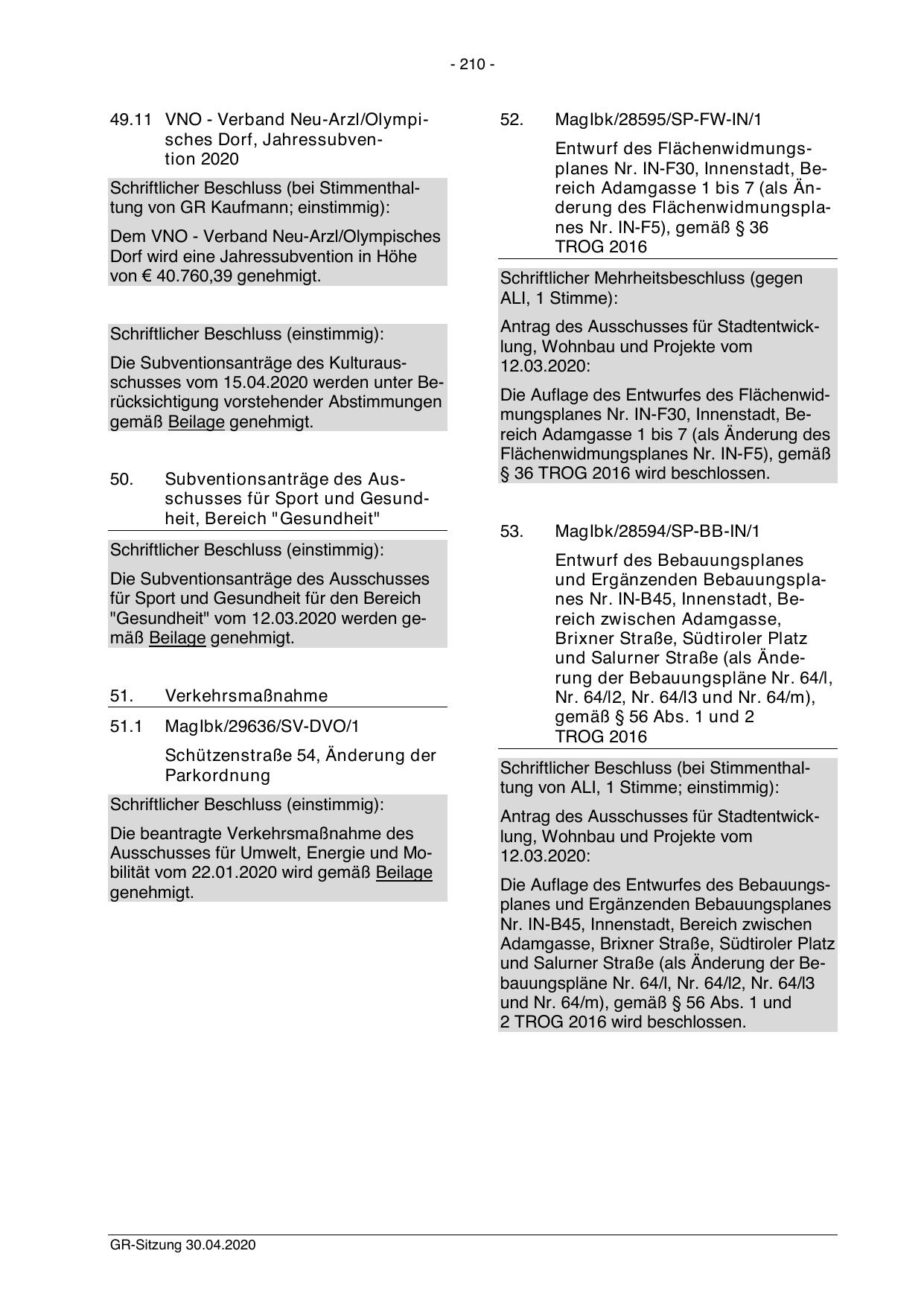 Schriftlicher Beschluss (bei Stimmenthaltung von GR Kaufmann; einstimmig):