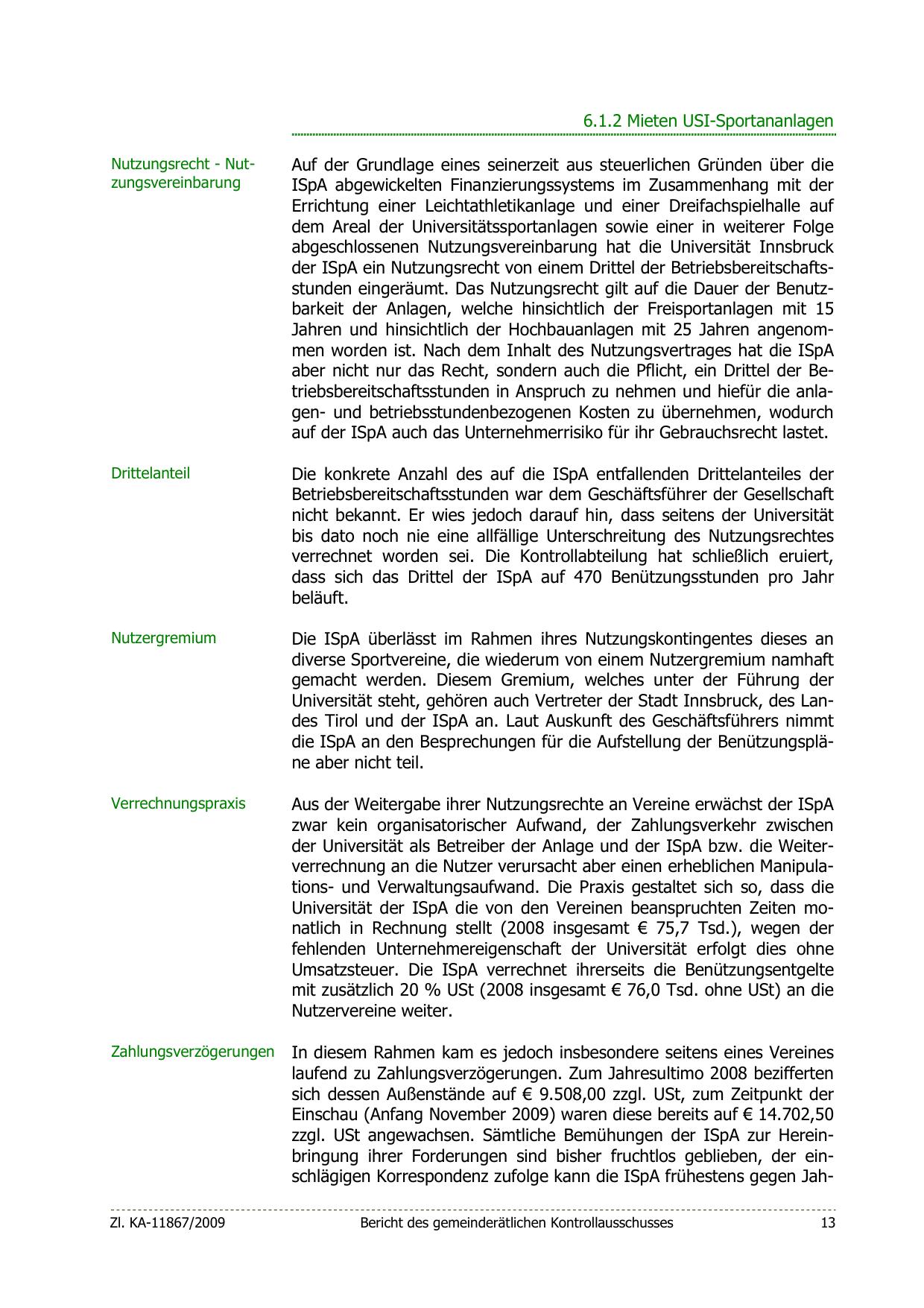 Universität der ISpA die von den Vereinen beanspruchten Zeiten monatlich in Rechnung stellt (2008 insgesamt € 75,7 Tsd.), wegen der