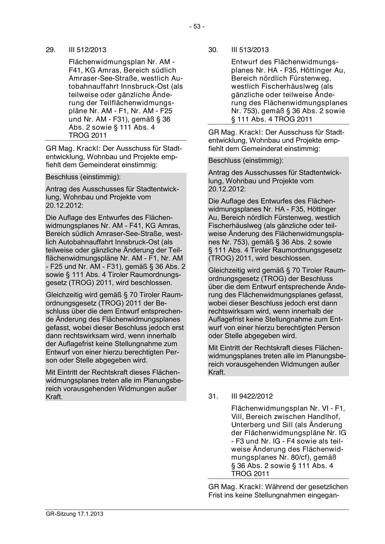 Frist ins keine Stellungnahmen eingeganGR-Sitzung 17.1.2013