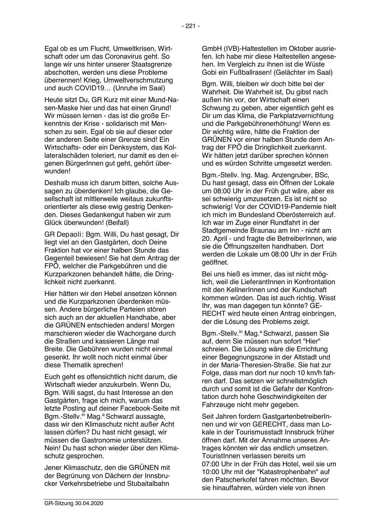 GR Depaoli: Bgm. Willi, Du hast gesagt, Dir
