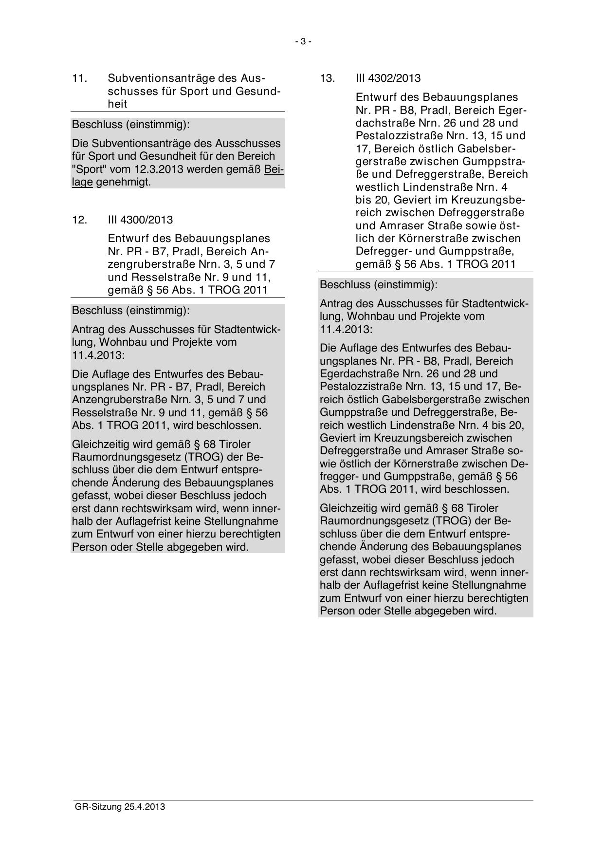 Raumordnungsgesetz (TROG) der Beschluss über die dem Entwurf entsprechende Änderung des Bebauungsplanes