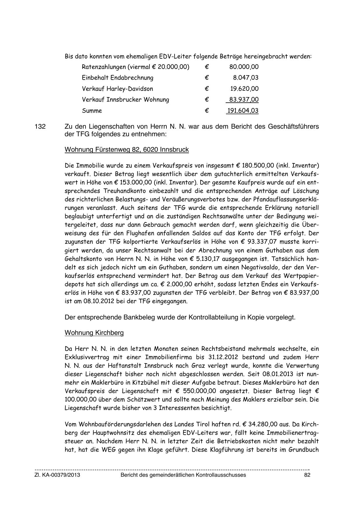Zu den Liegenschaften von Herrn N. N. war aus dem Bericht des Geschäftsführers