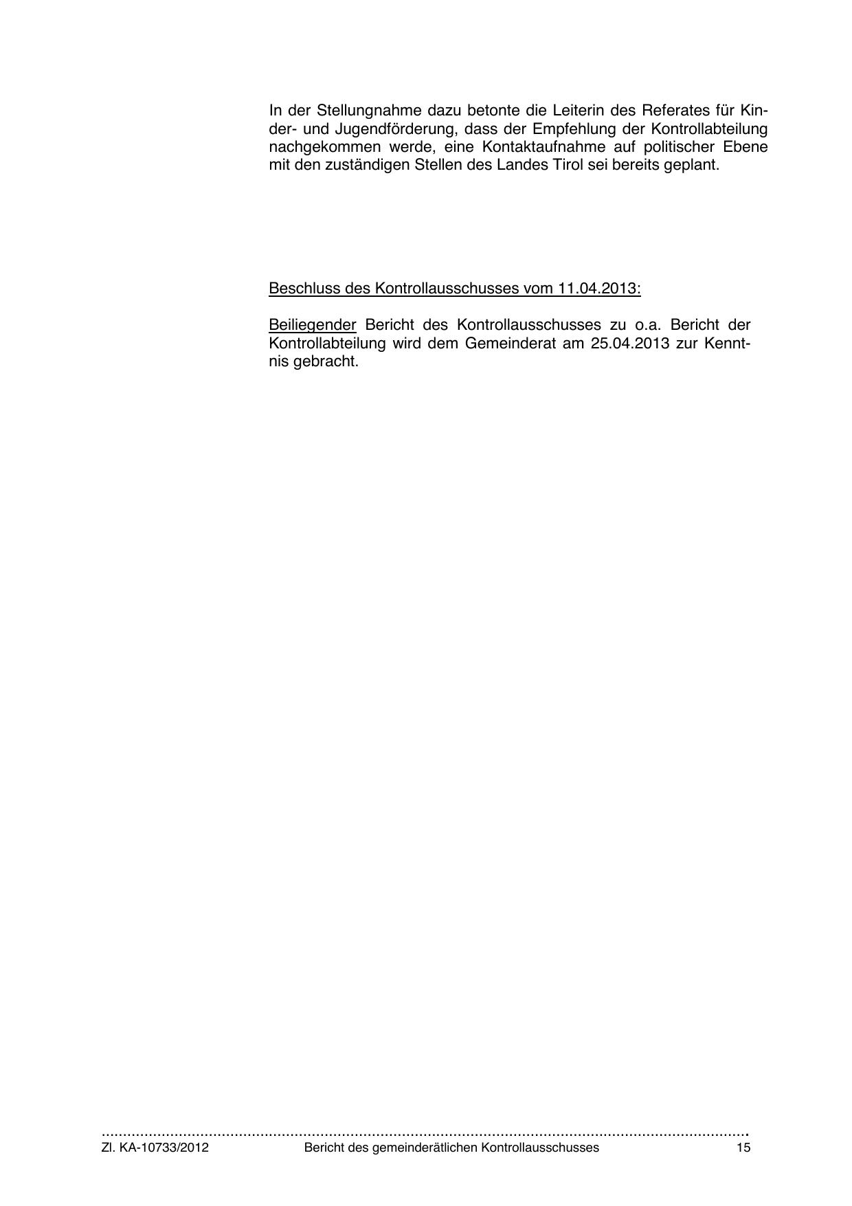 Beschluss des Kontrollausschusses vom 11.04.2013: