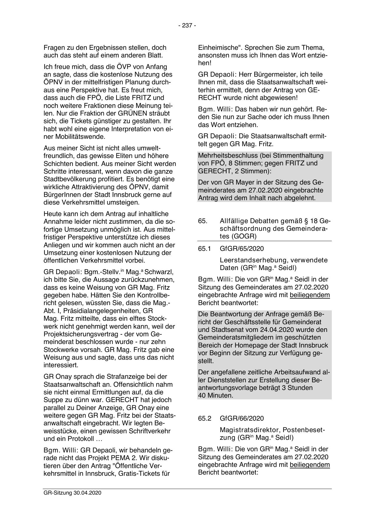 GR Depaoli: Die Staatsanwaltschaft ermittelt gegen GR Mag. Fritz.