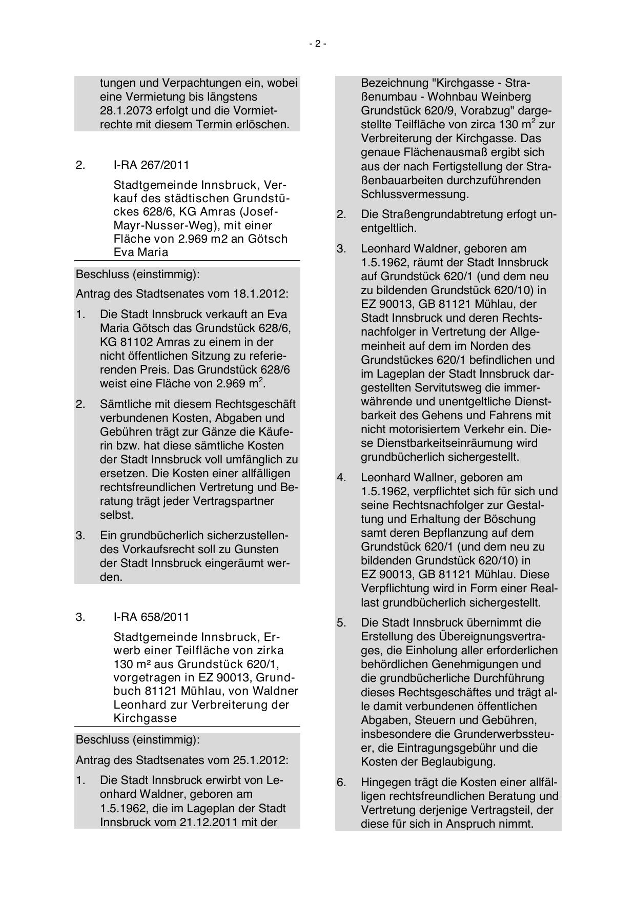 Stadtgemeinde Innsbruck, Erwerb einer Teilfläche von zirka
