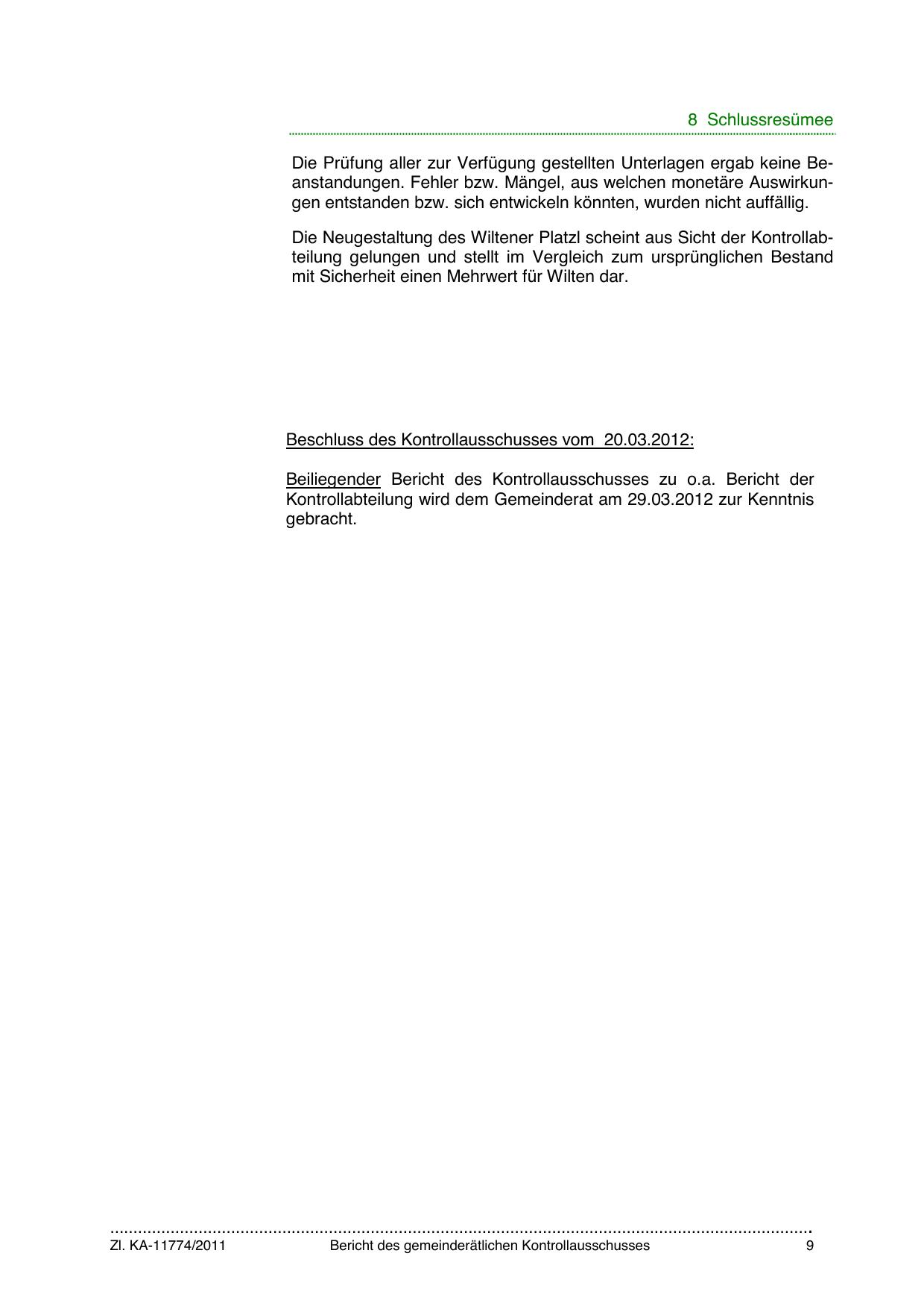 Beschluss des Kontrollausschusses vom 20.03.2012: