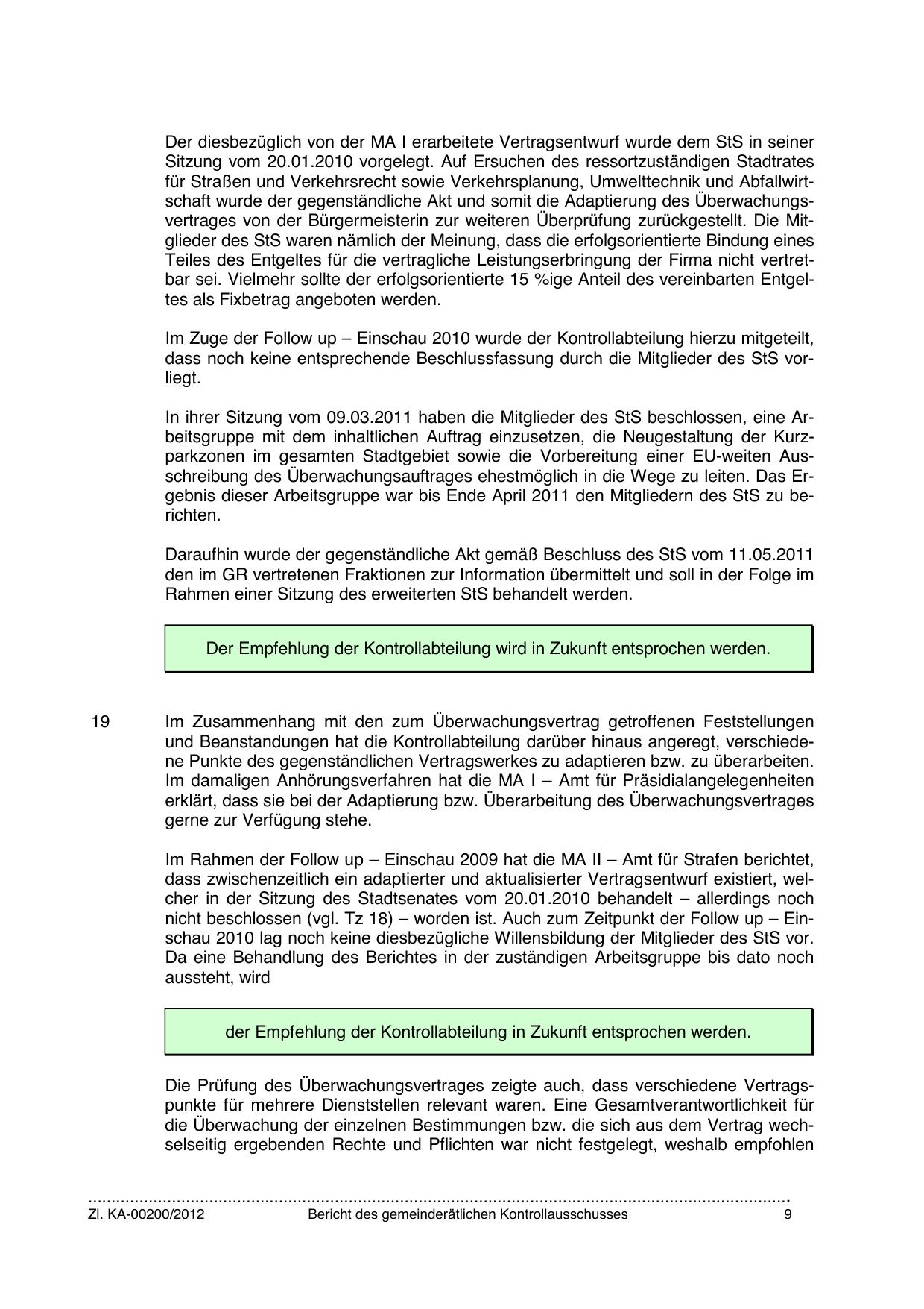 und Beanstandungen hat die Kontrollabteilung darüber hinaus angeregt, verschiedene Punkte des gegenständlichen Vertragswerkes zu adaptieren bzw. zu überarbeiten.