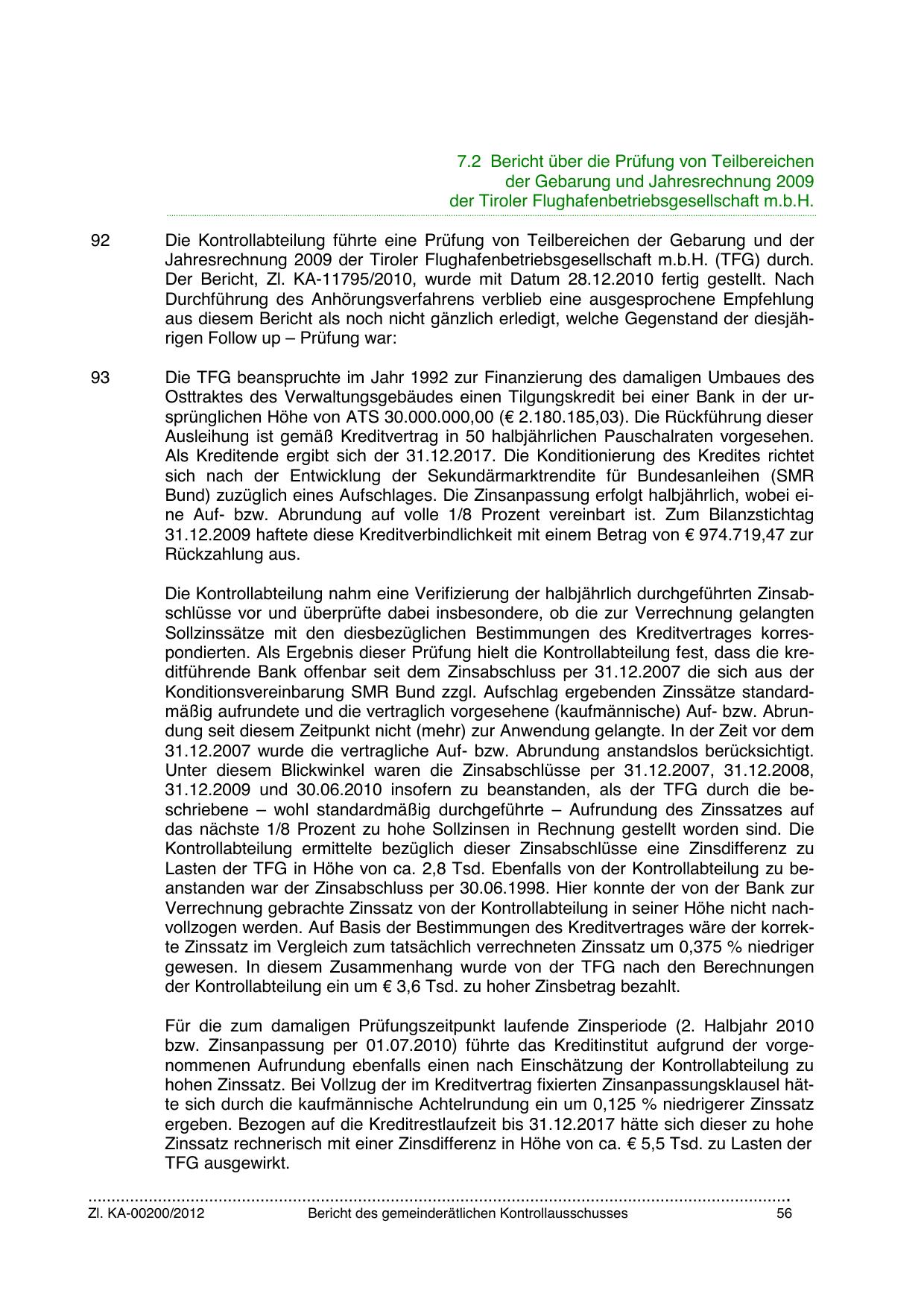 Jahresrechnung 2009 der Tiroler Flughafenbetriebsgesellschaft m.b.H. (TFG) durch.