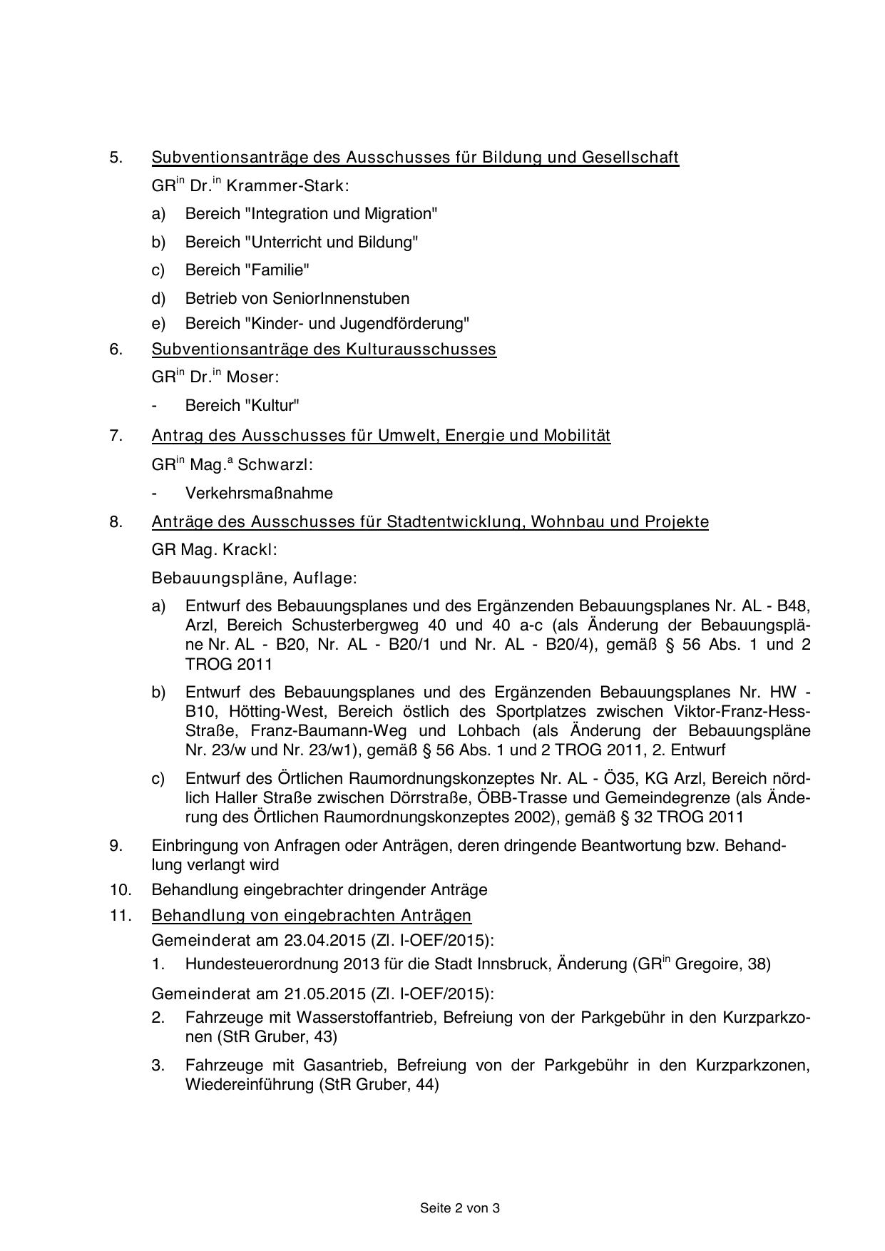 Gemeinderat am 21.05.2015 (Zl. I-OEF/2015):