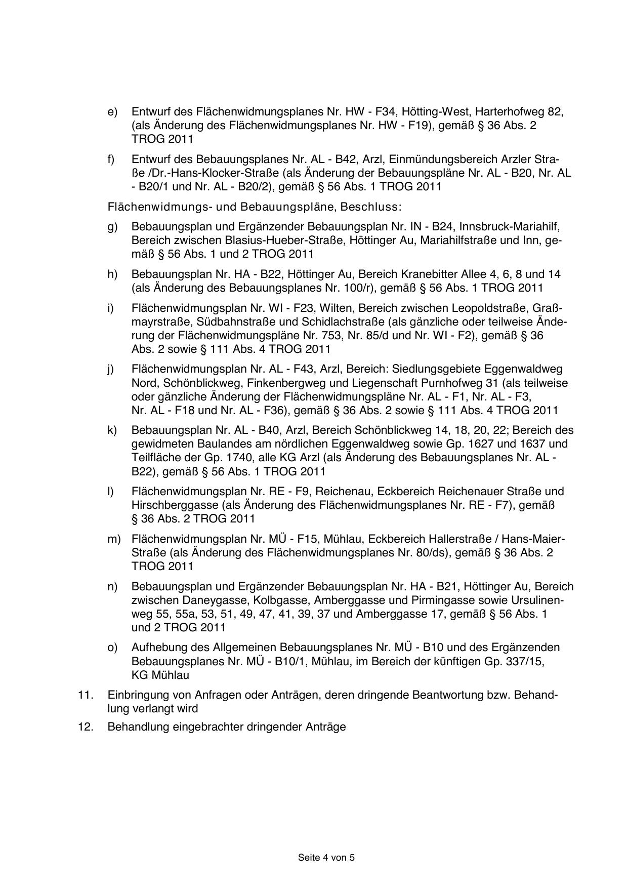 m) Flächenwidmungsplan Nr. MÜ - F15, Mühlau, Eckbereich Hallerstraße / Hans-MaierStraße (als Änderung des Flächenwidmungsplanes Nr. 80/ds), gemäß § 36 Abs. 2