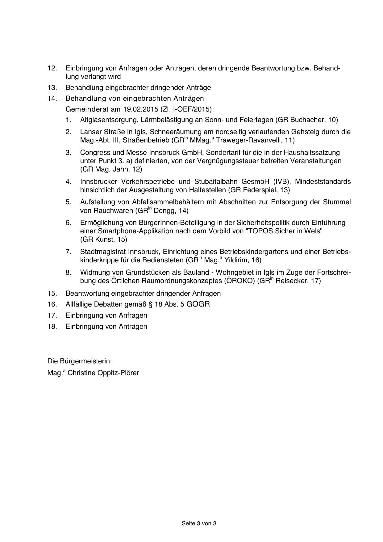 Gemeinderat am 19.02.2015 (Zl. I-OEF/2015):