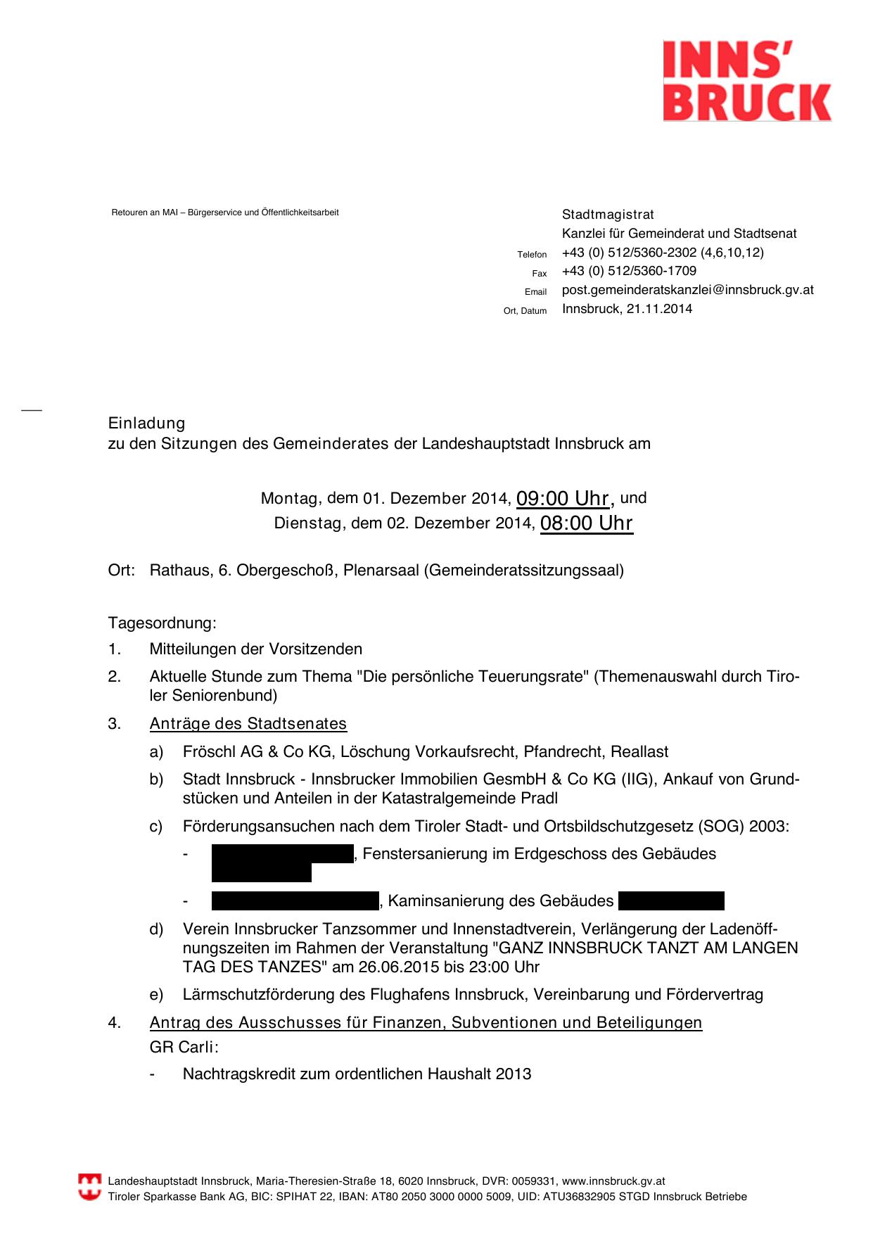zu den Sitzungen des Gemeinderates der Landeshauptstadt Innsbruck am