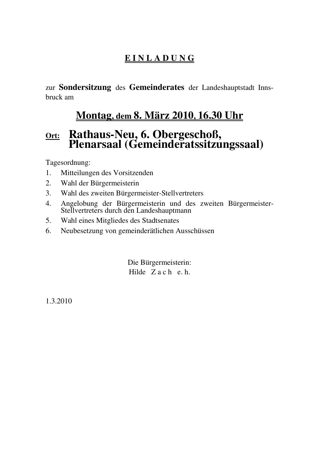 zur Sondersitzung des Gemeinderates der Landeshauptstadt Innsbruck am