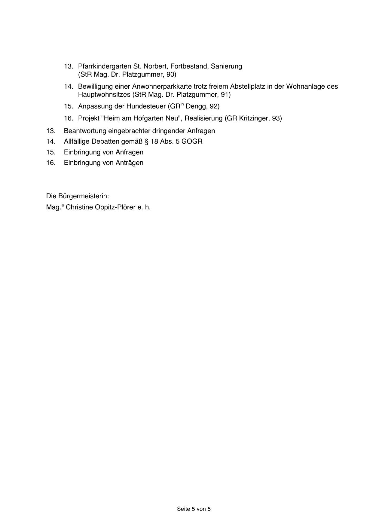 Hauptwohnsitzes (StR Mag. Dr. Platzgummer, 91)