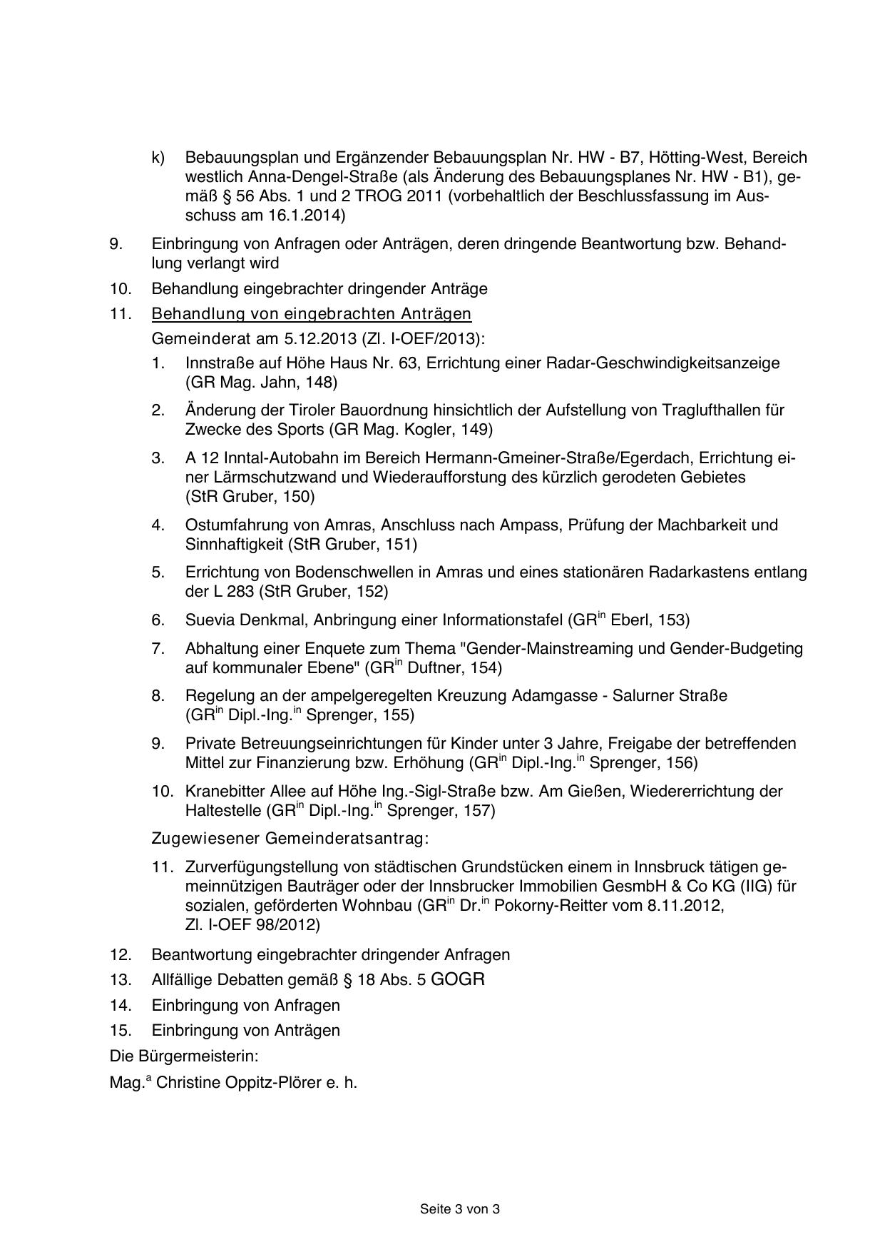 Gemeinderat am 5.12.2013 (Zl. I-OEF/2013):