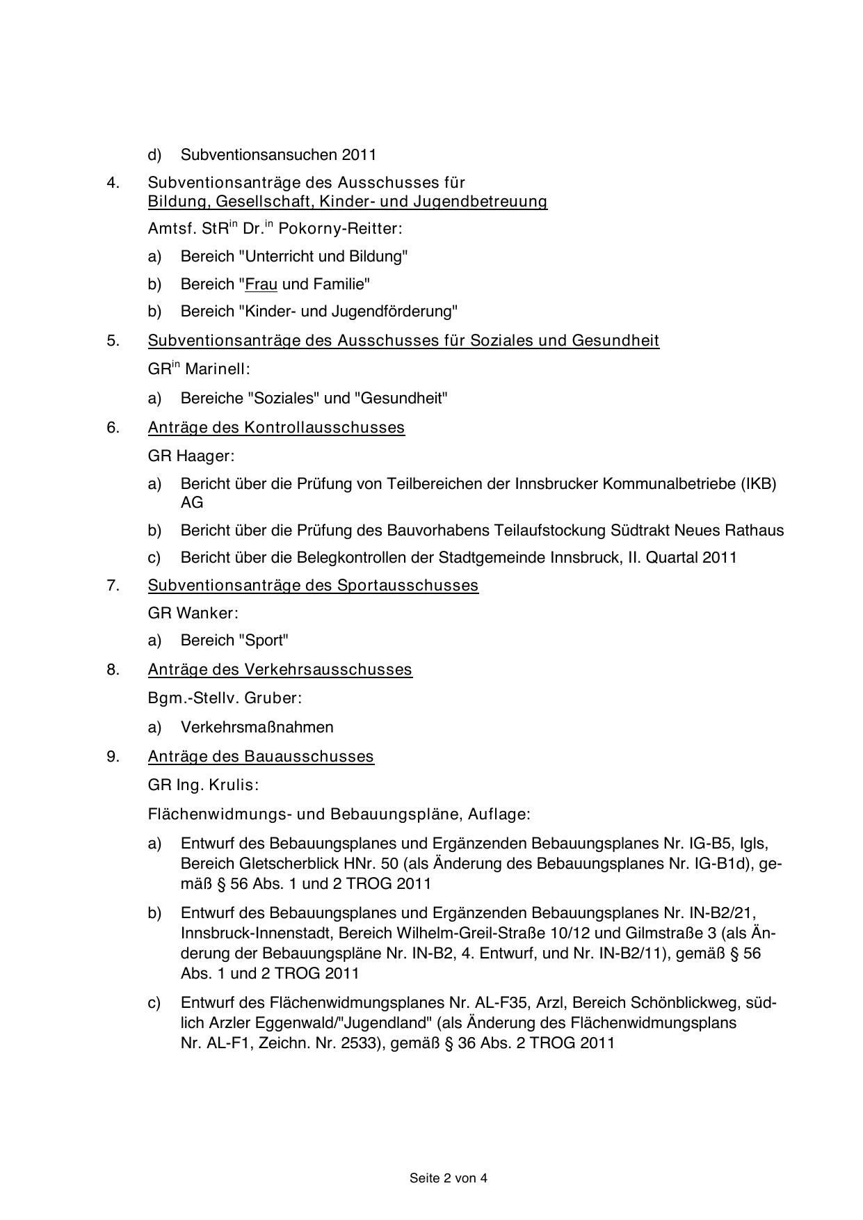 Bericht über die Belegkontrollen der Stadtgemeinde Innsbruck, II. Quartal 2011