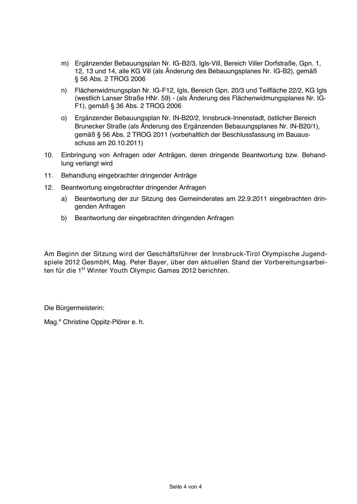 gemäß § 56 Abs. 2 TROG 2011 (vorbehaltlich der Beschlussfassung im Bauausschuss am 20.10.2011)