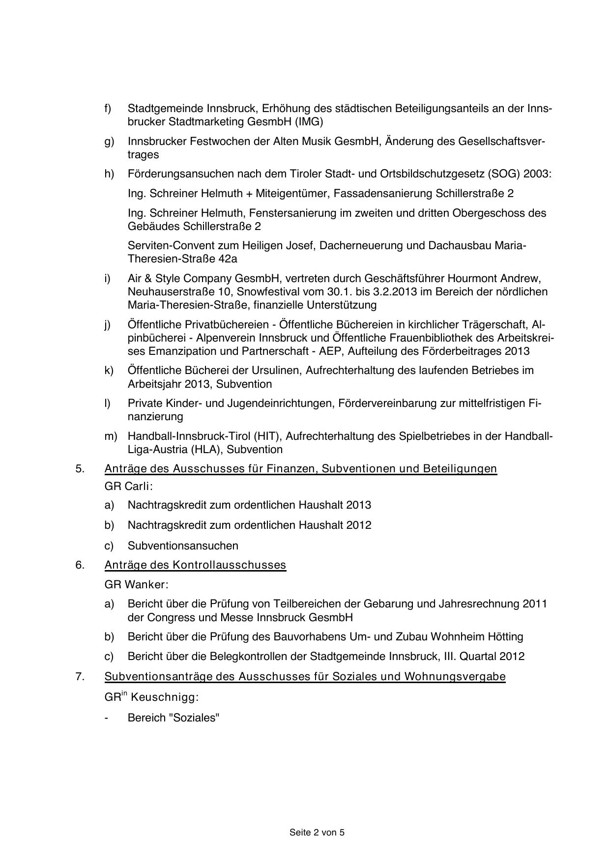 Bericht über die Belegkontrollen der Stadtgemeinde Innsbruck, III. Quartal 2012