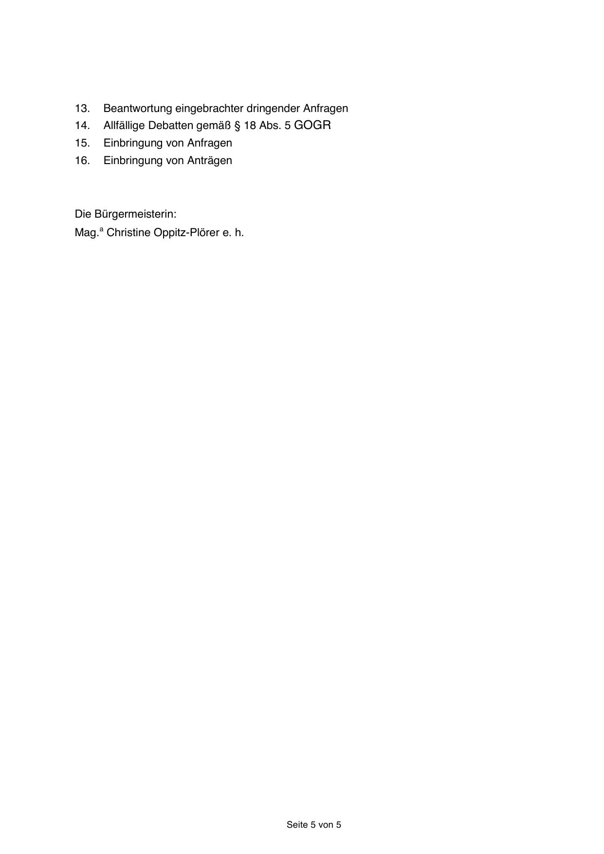 Allfällige Debatten gemäß § 18 Abs. 5 GOGR