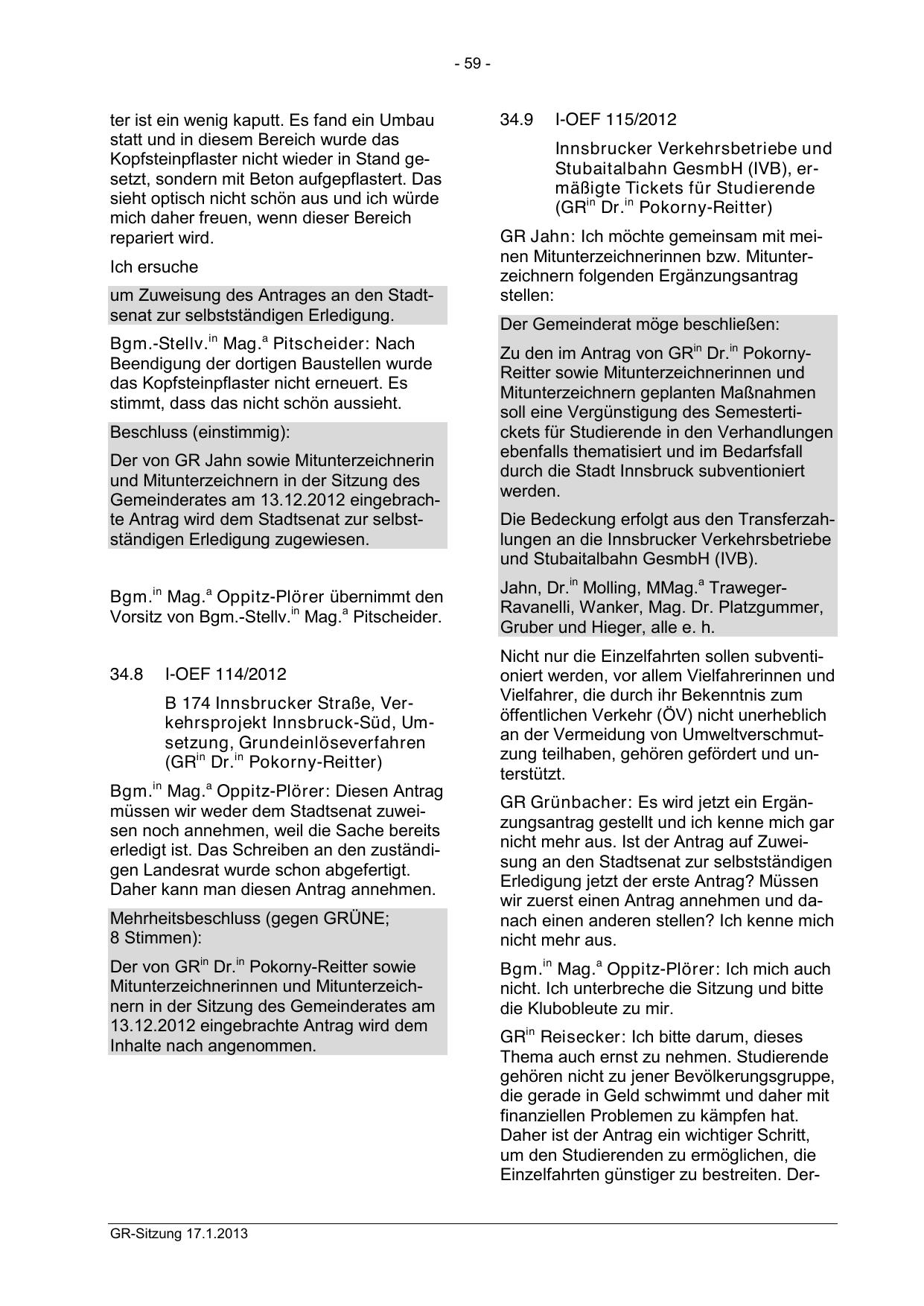 Gemeinderates am 13.12.2012 eingebrachte Antrag wird dem Stadtsenat zur selbstständigen Erledigung zugewiesen.