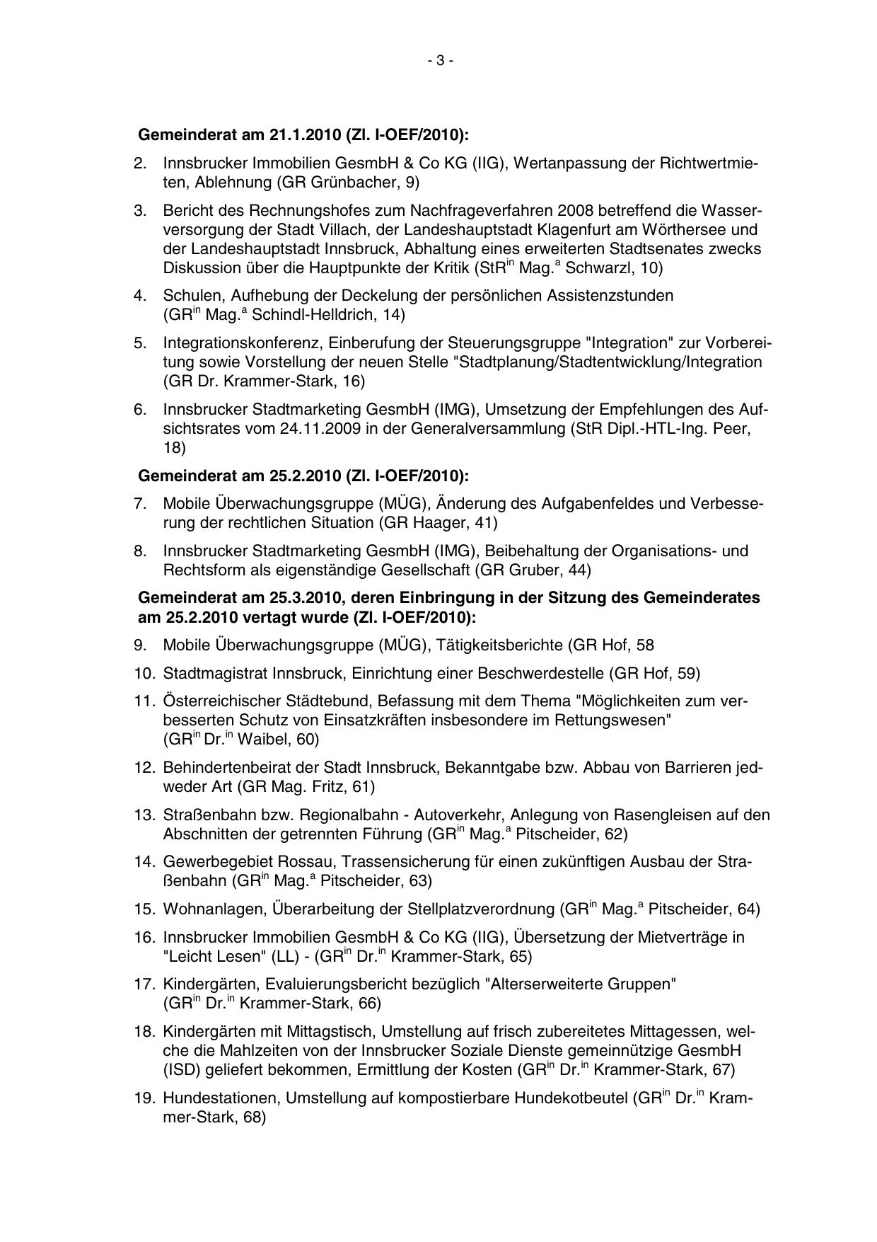 Gemeinderat am 25.2.2010 (Zl. I-OEF/2010):