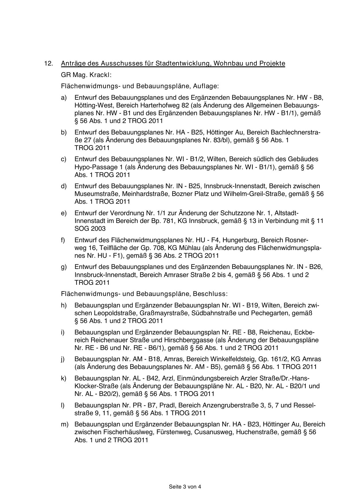 Bebauungsplan Nr. PR - B7, Pradl, Bereich Anzengruberstraße 3, 5, 7 und Resselstraße 9, 11, gemäß § 56 Abs. 1 TROG 2011