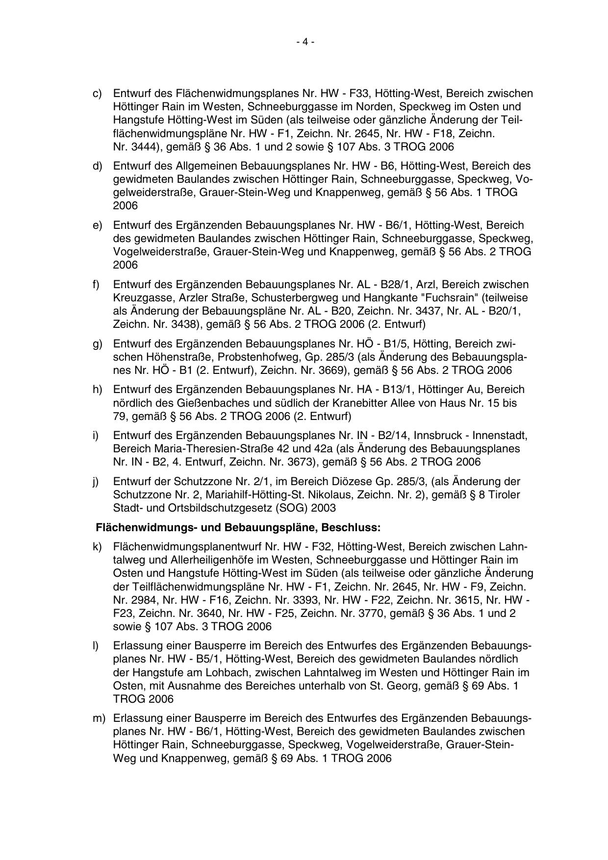 Höttinger Rain, Schneeburggasse, Speckweg, Vogelweiderstraße, Grauer-SteinWeg und Knappenweg, gemäß § 69 Abs. 1 TROG 2006