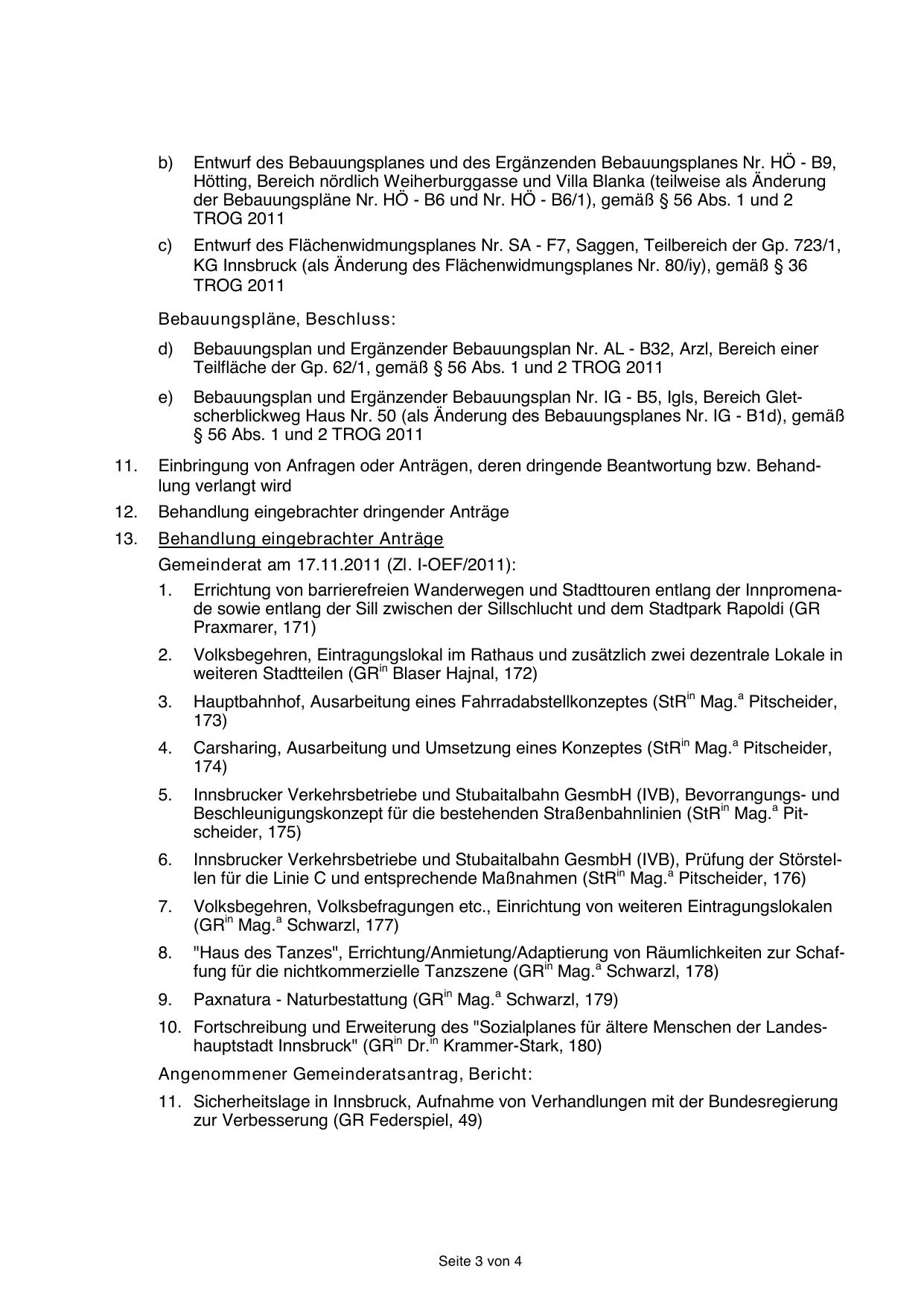 Gemeinderat am 17.11.2011 (Zl. I-OEF/2011):