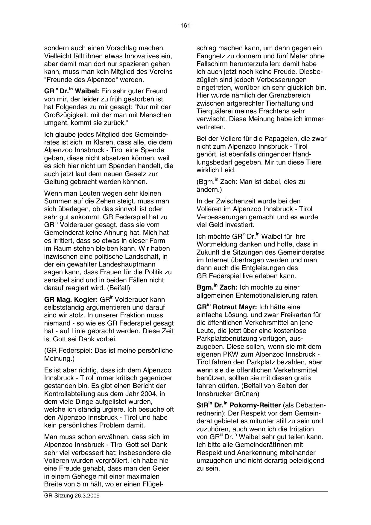 StRin Dr.in Pokorny-Reitter (als Debattenrednerin): Der Respekt vor dem Gemeinderat gebietet es mitunter still zu sein und