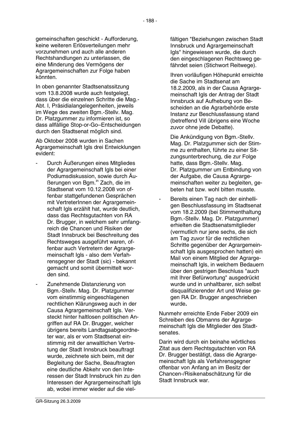 18.2.2009, als in der Causa Agrargemeinschaft Igls der Antrag der Stadt