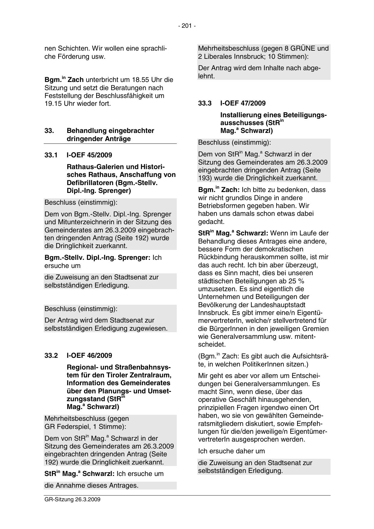 Gemeinderates am 26.3.2009 eingebrachten dringenden Antrag (Seite 192) wurde