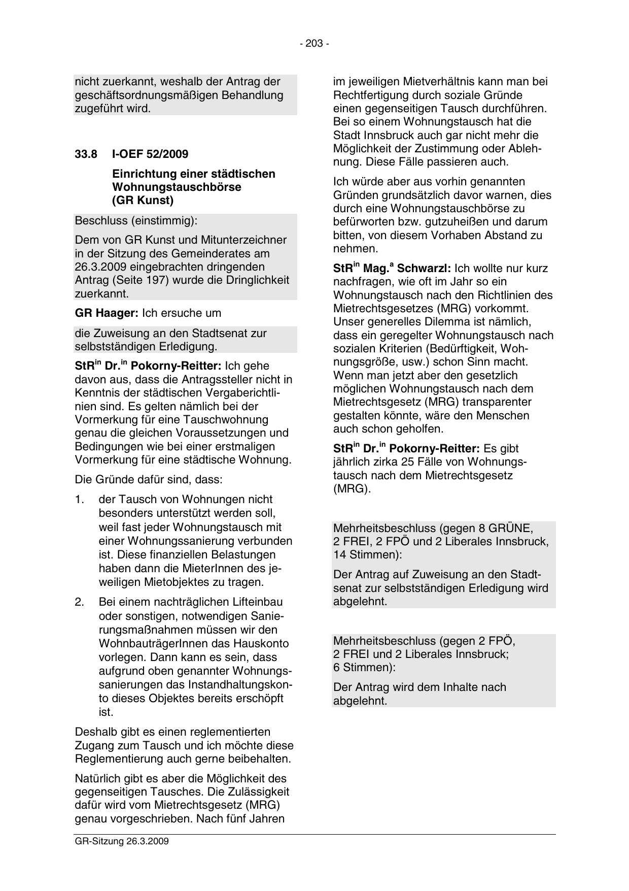 Mehrheitsbeschluss (gegen 2 FPÖ,