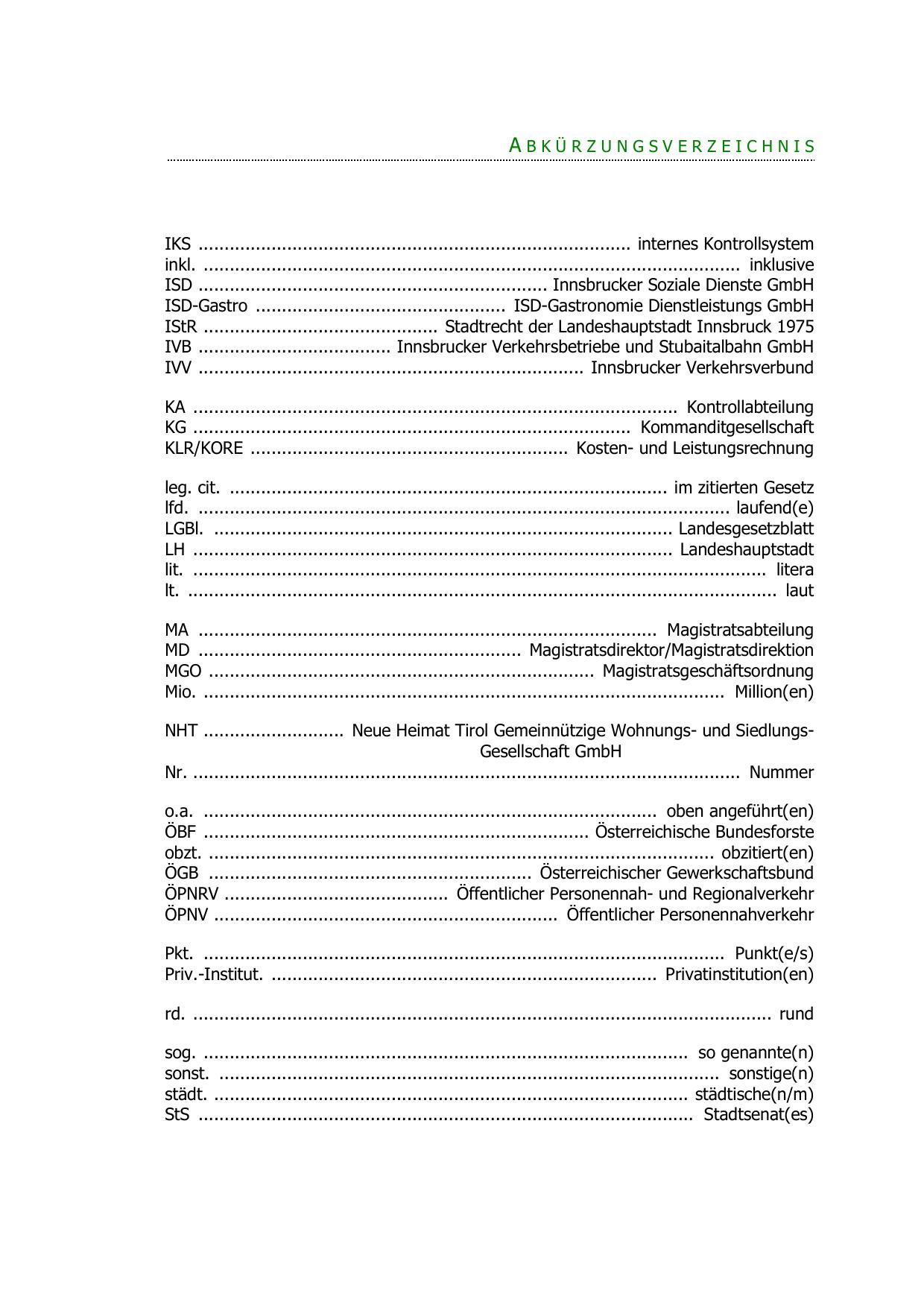 IStR ............................................. Stadtrecht der Landeshauptstadt Innsbruck 1975