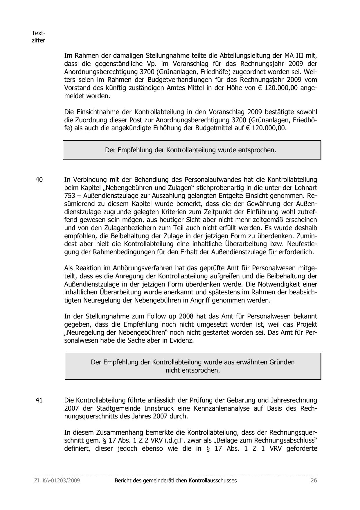 Anordnungsberechtigung 3700 (Grünanlagen, Friedhöfe) zugeordnet worden sei. Weiters seien im Rahmen der Budgetverhandlungen für das Rechnungsjahr 2009 vom