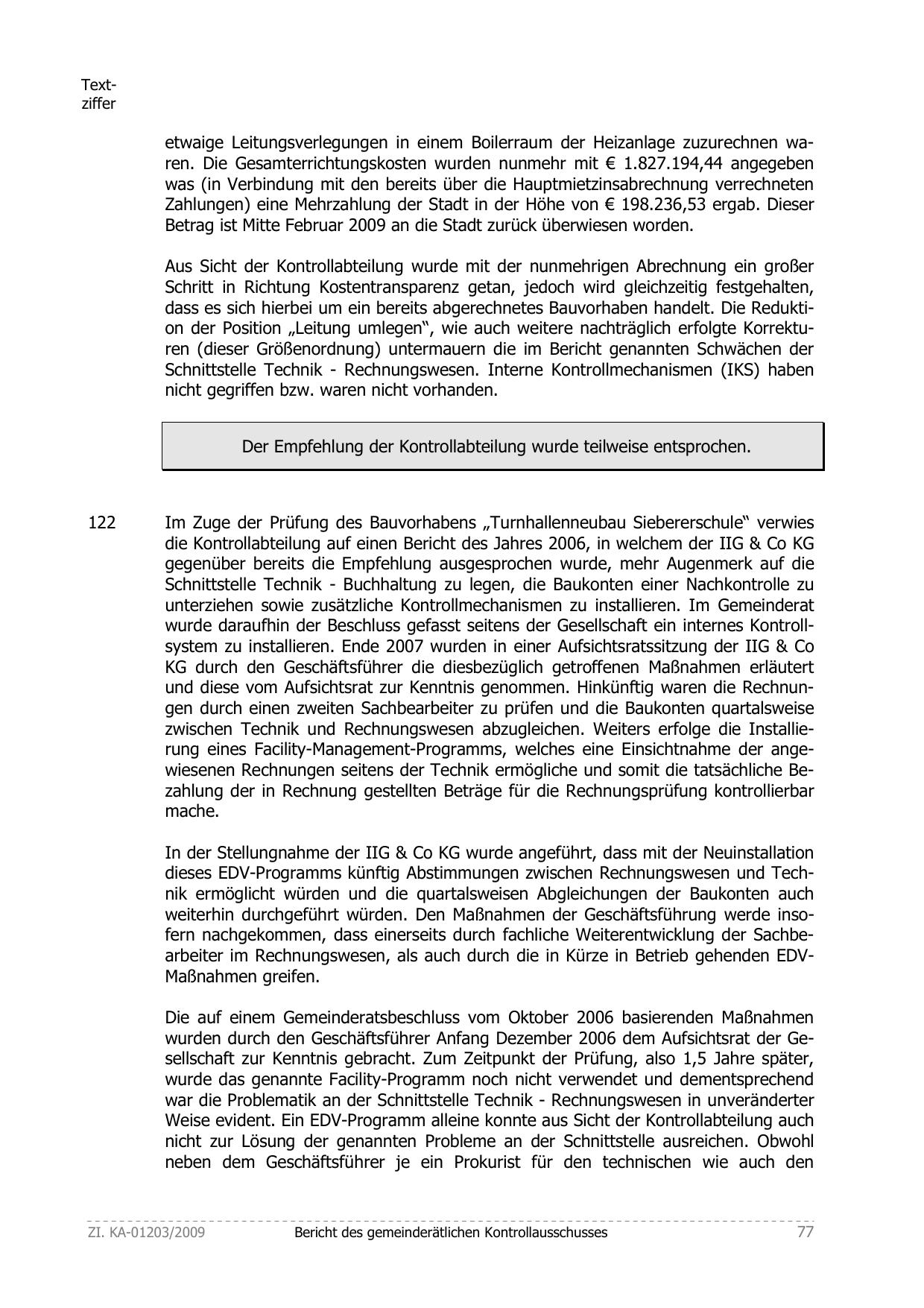 Der Empfehlung der Kontrollabteilung wurde teilweise entsprochen.