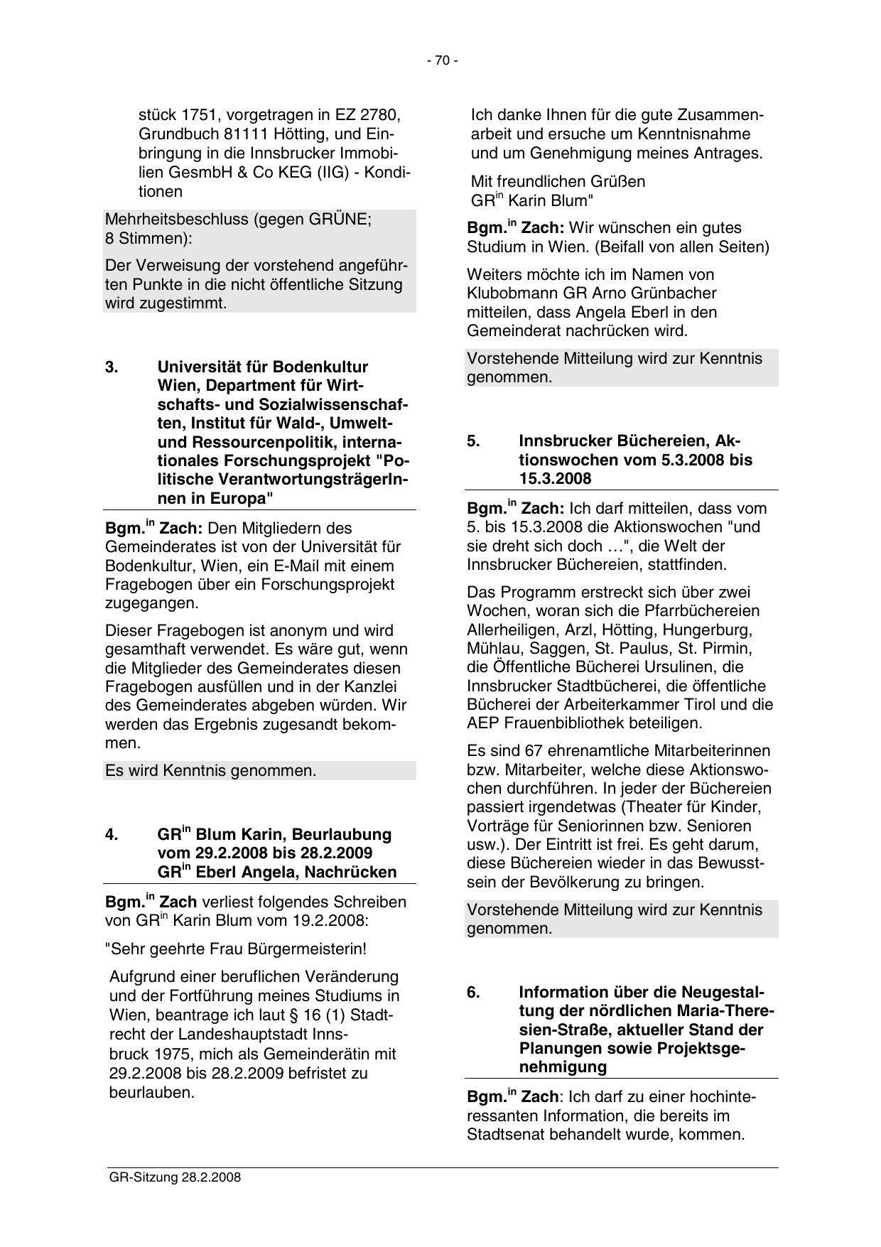 von GRin Karin Blum vom 19.2.2008: