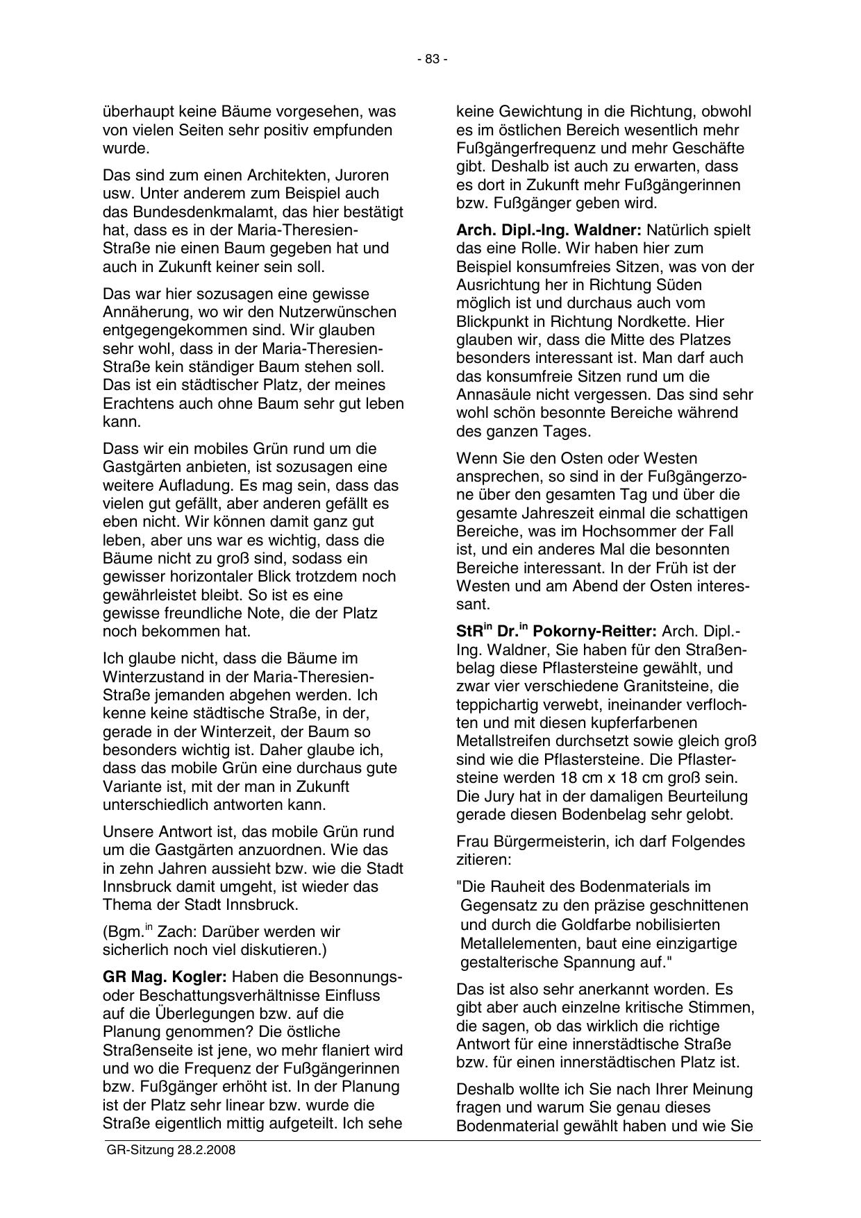 StRin Dr.in Pokorny-Reitter: Arch. Dipl.Ing. Waldner, Sie haben für den Straßenbelag diese Pflastersteine gewählt, und