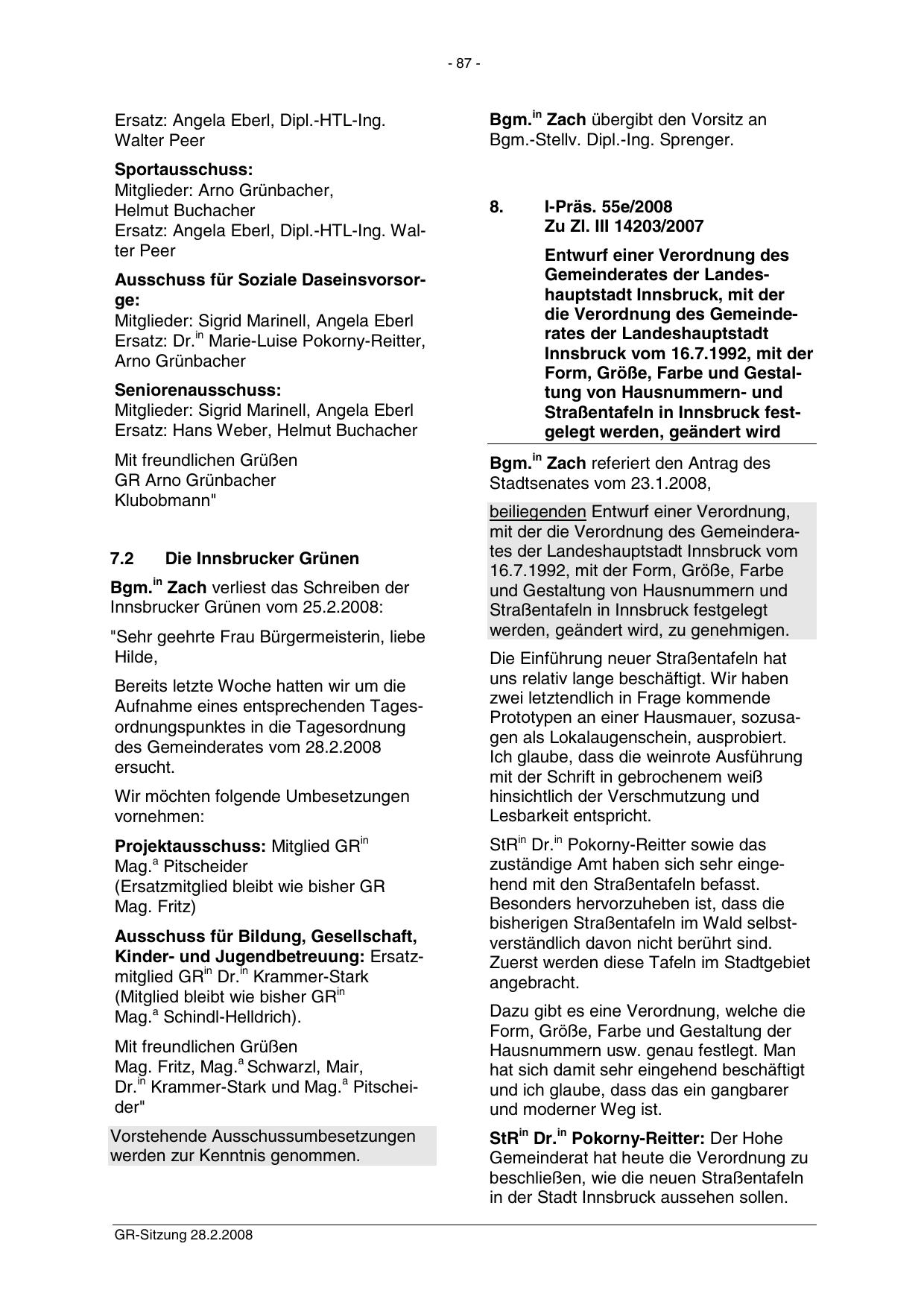 Gemeinderates der Landeshauptstadt Innsbruck, mit der