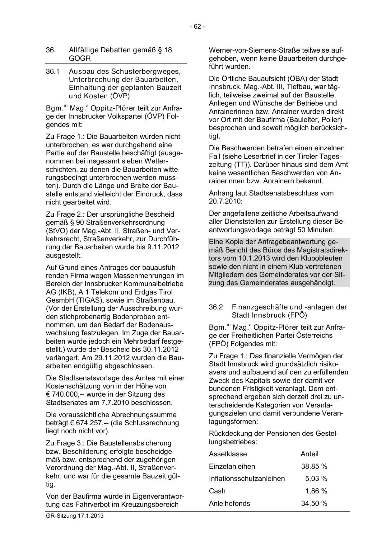 Bgm.in Mag.a Oppitz-Plörer teilt zur Anfrage der Innsbrucker Volkspartei (ÖVP) Folgendes mit: