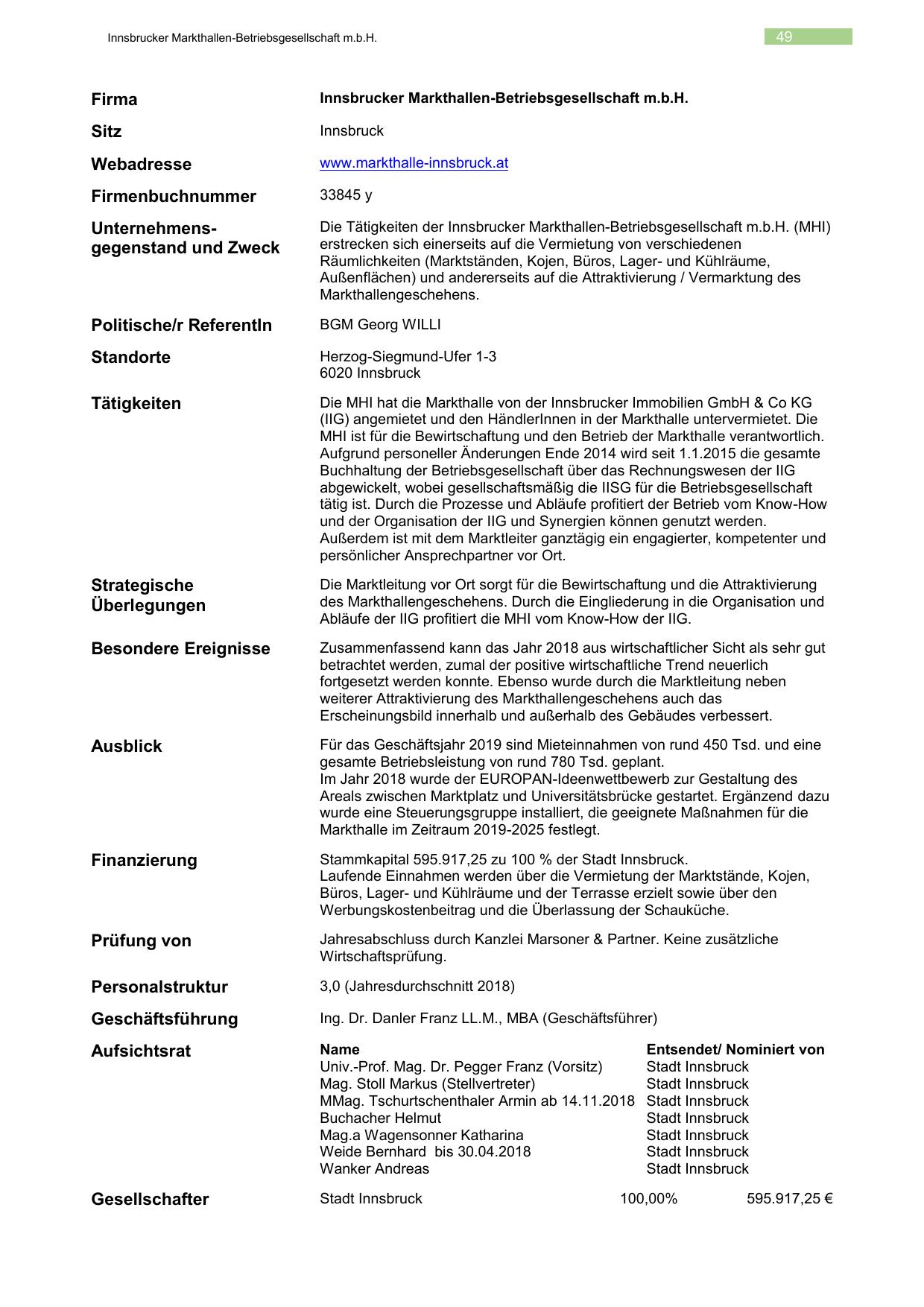 Die Tätigkeiten der Innsbrucker Markthallen-Betriebsgesellschaft m.b.H. (MHI)
