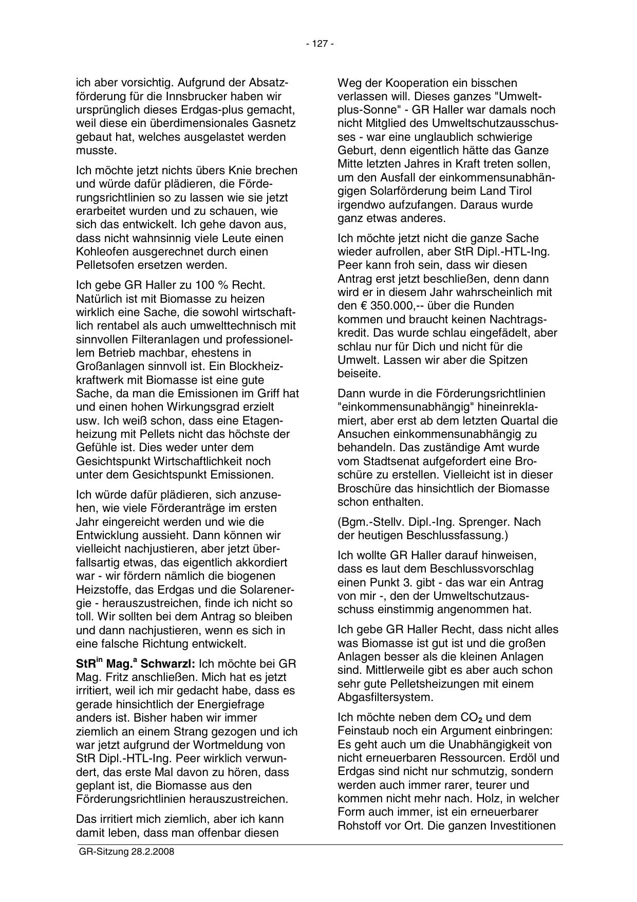 verlassen will. Dieses ganzes "Umweltplus-Sonne" - GR Haller war damals noch
