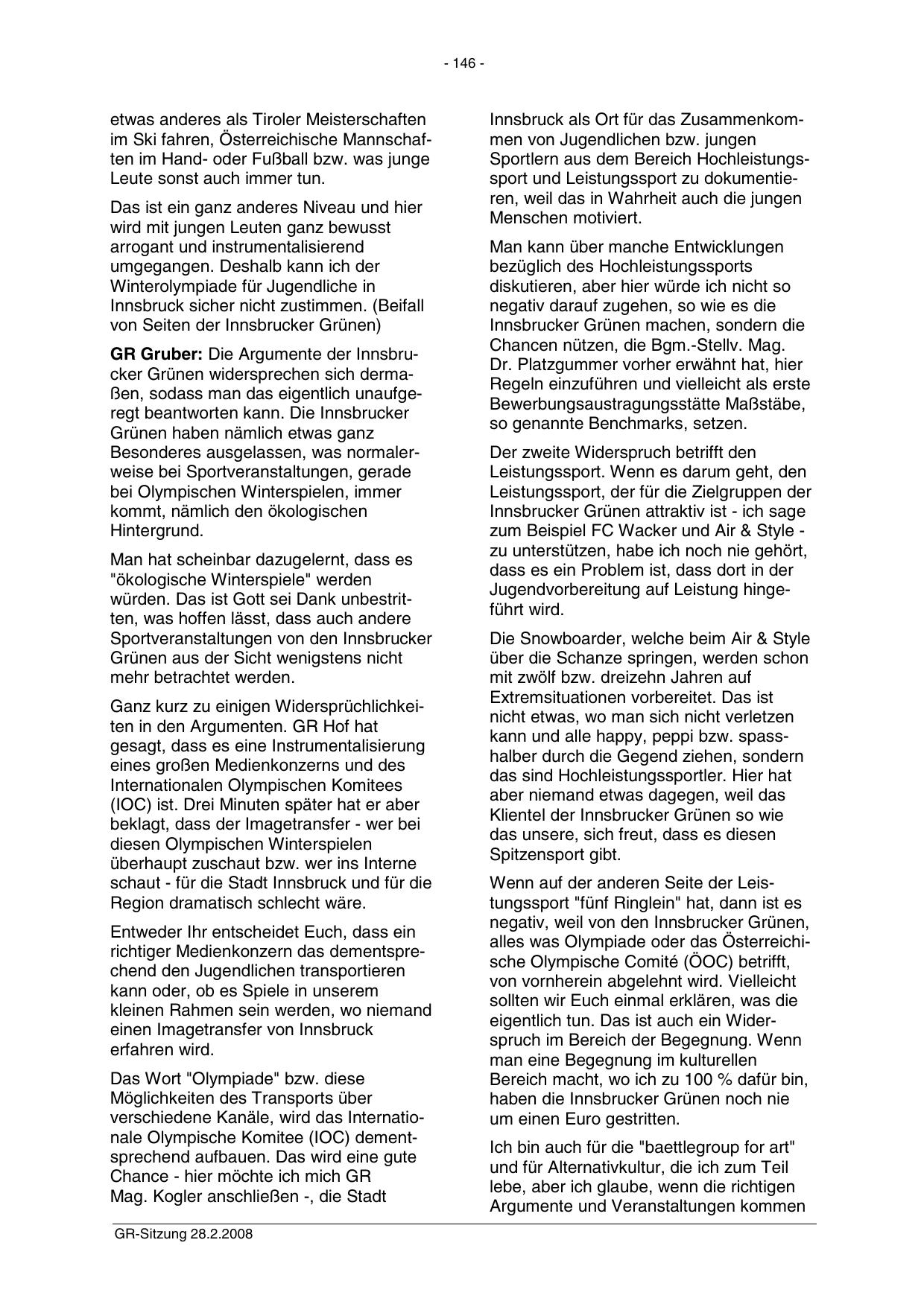 GR Gruber: Die Argumente der Innsbrucker Grünen widersprechen sich dermaßen, sodass man das eigentlich unaufgeregt beantworten kann. Die Innsbrucker
