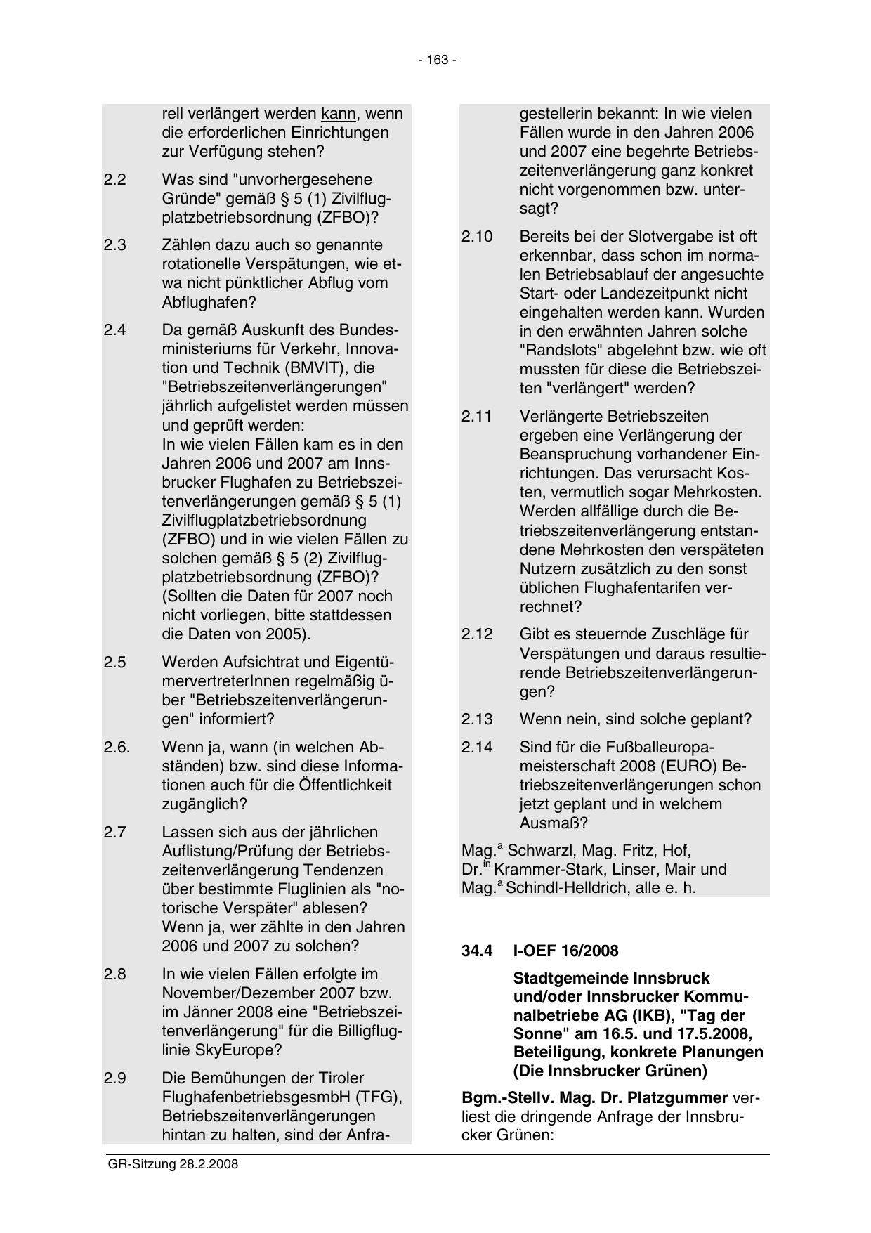 Bgm.-Stellv. Mag. Dr. Platzgummer verliest die dringende Anfrage der Innsbrucker Grünen: