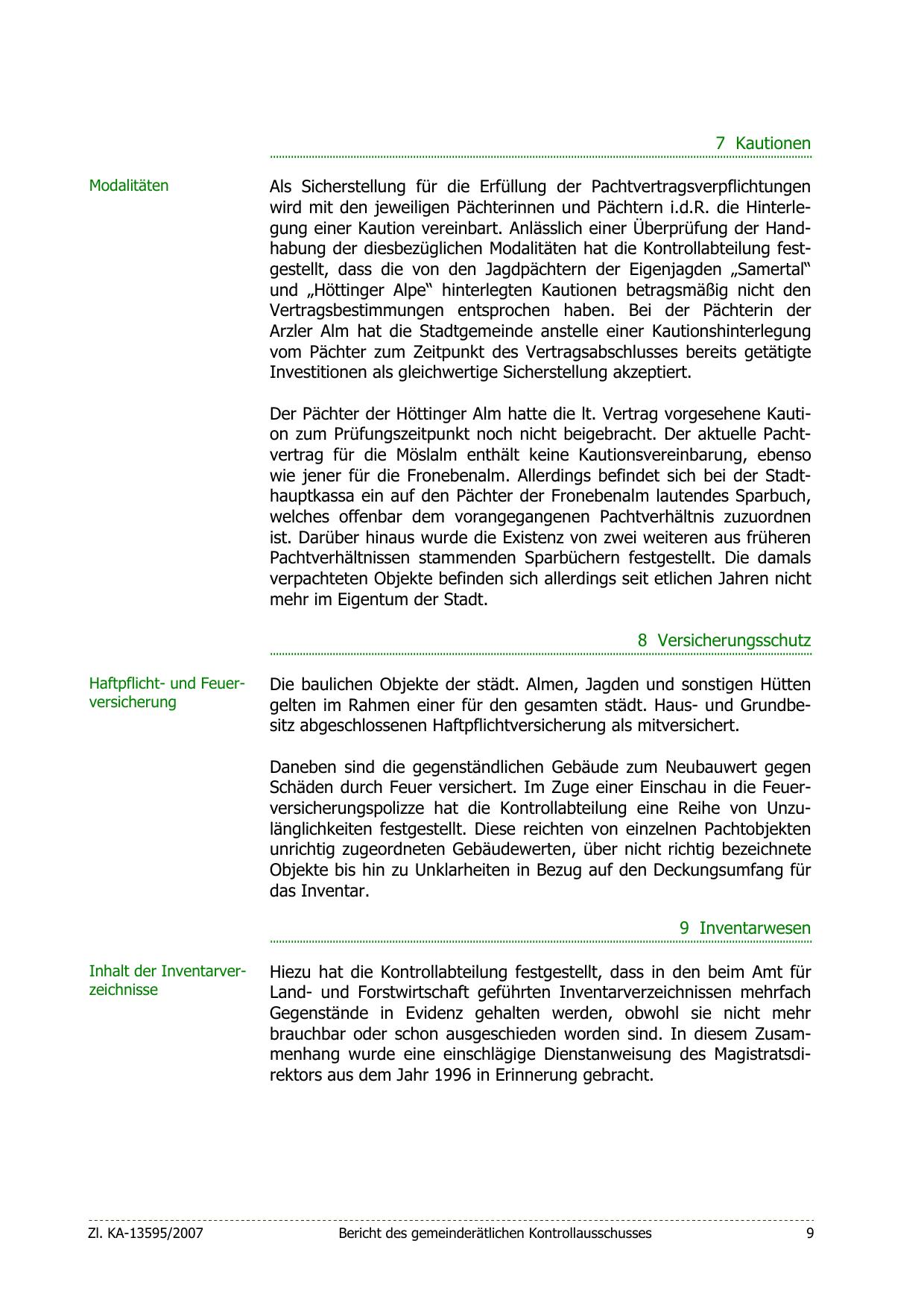 Der Pächter der Höttinger Alm hatte die lt. Vertrag vorgesehene Kaution zum Prüfungszeitpunkt noch nicht beigebracht. Der aktuelle Pachtvertrag für die Möslalm enthält keine Kautionsvereinbarung, ebenso