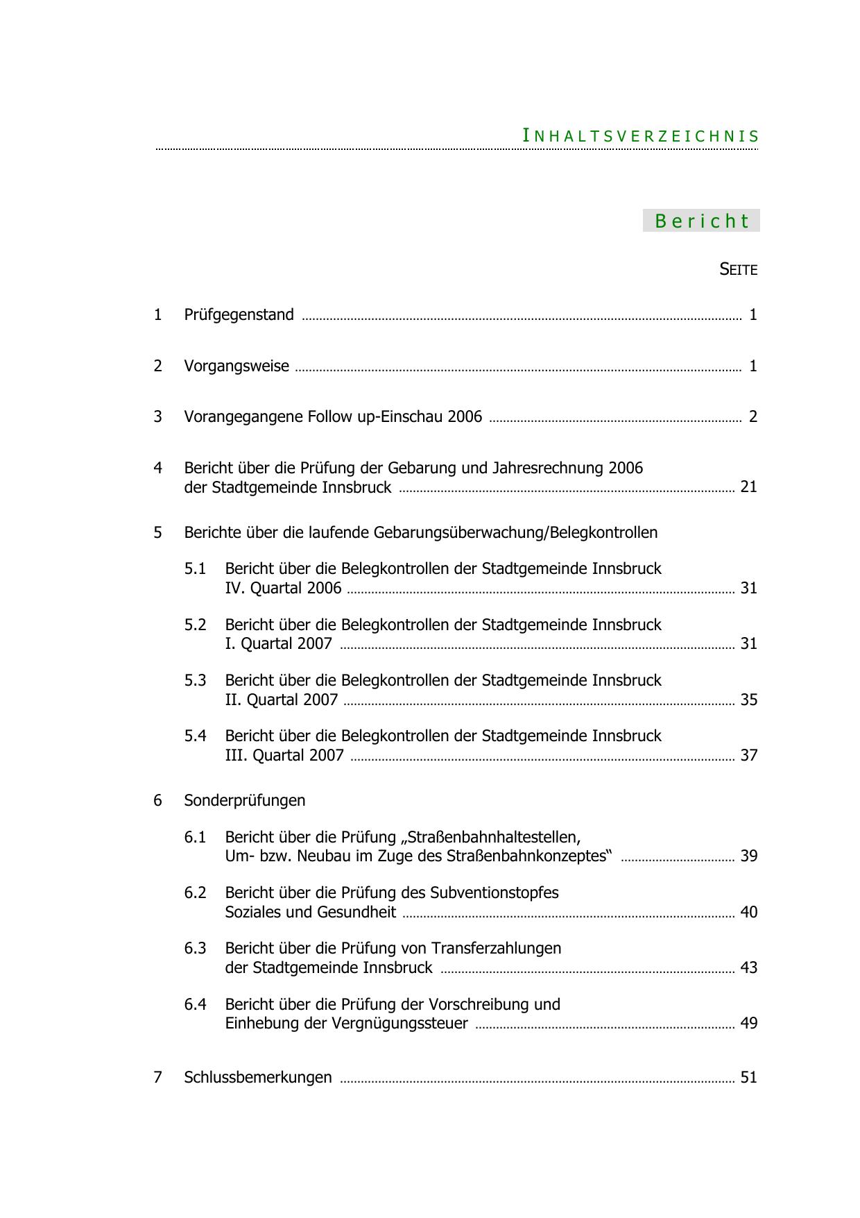 Bericht über die Belegkontrollen der Stadtgemeinde Innsbruck