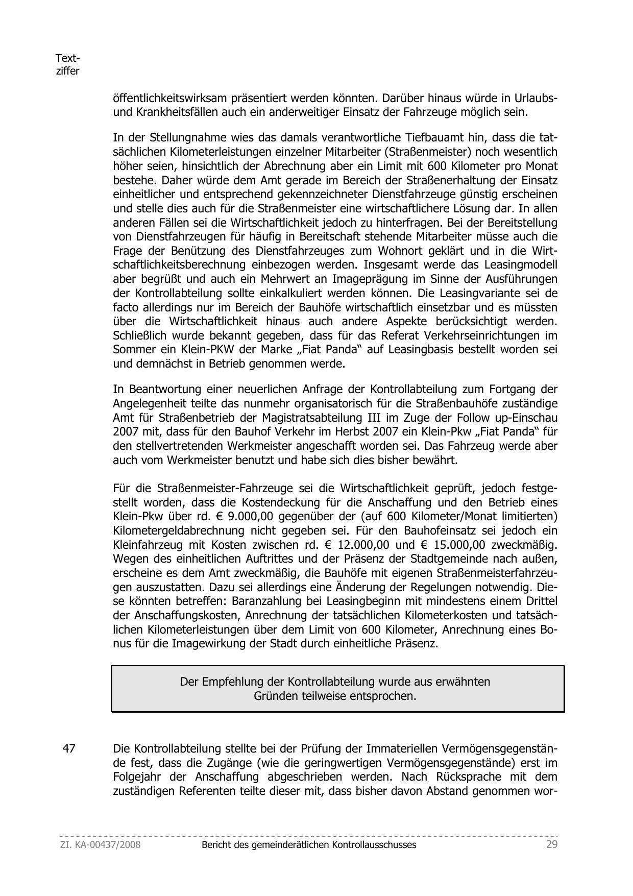 In der Stellungnahme wies das damals verantwortliche Tiefbauamt hin, dass die tatsächlichen Kilometerleistungen einzelner Mitarbeiter (Straßenmeister) noch wesentlich
