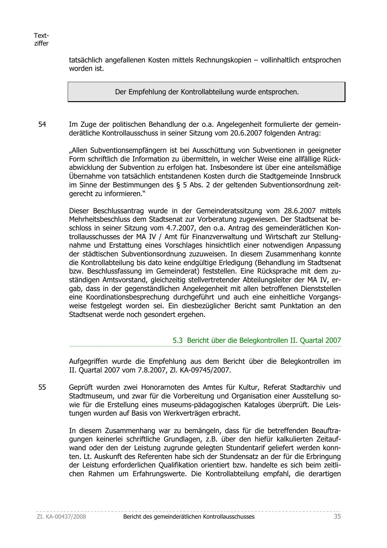 5.3 Bericht über die Belegkontrollen II. Quartal 2007