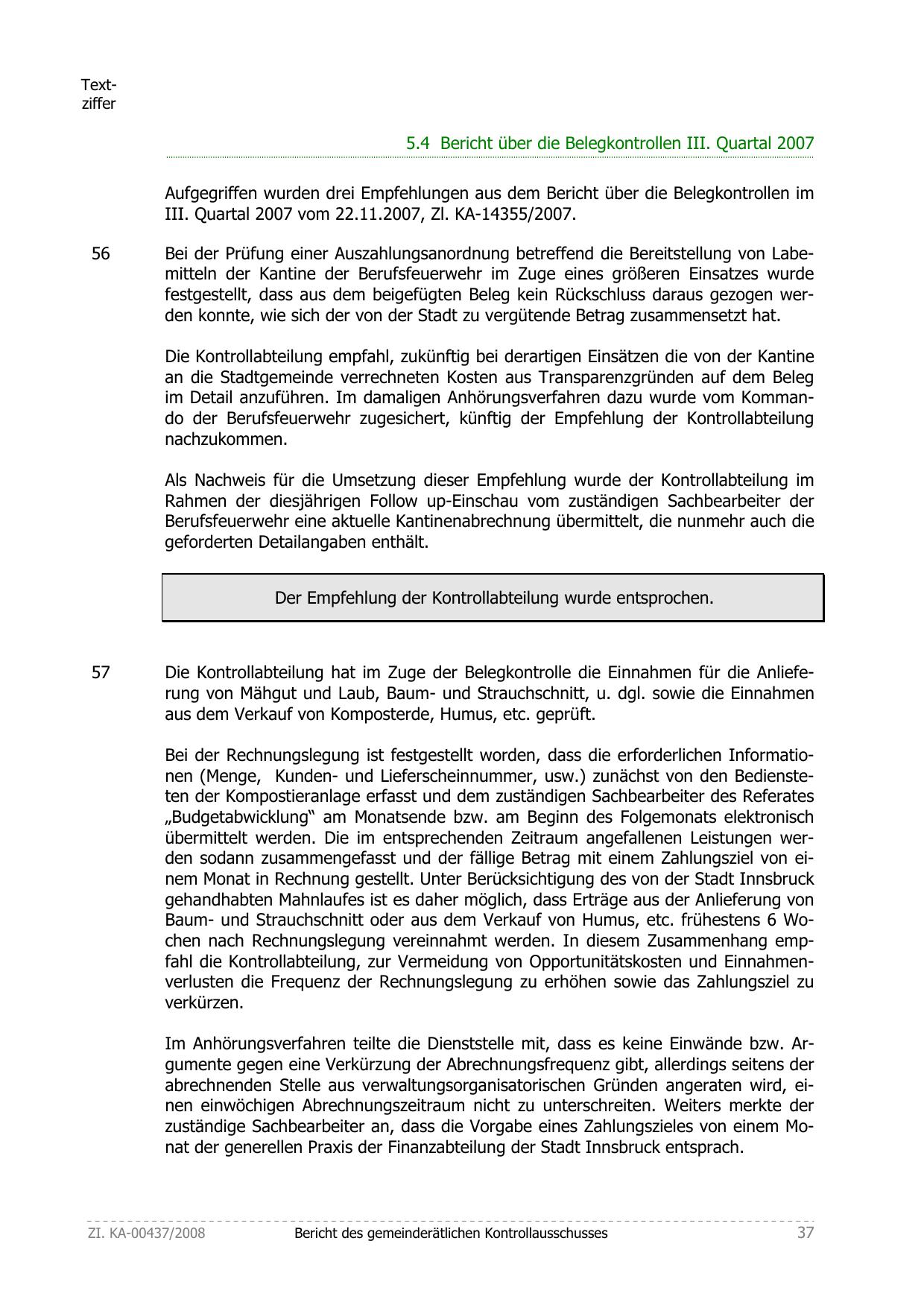 5.4 Bericht über die Belegkontrollen III. Quartal 2007