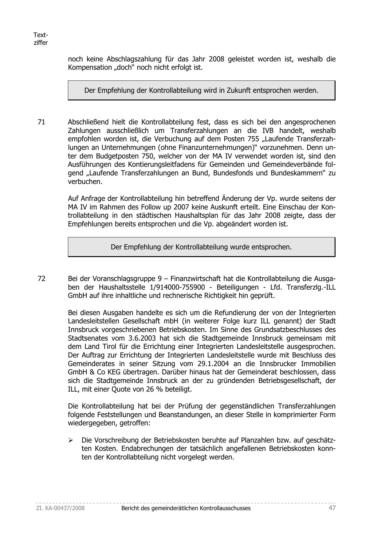 Innsbruck vorgeschriebenen Betriebskosten. Im Sinne des Grundsatzbeschlusses des