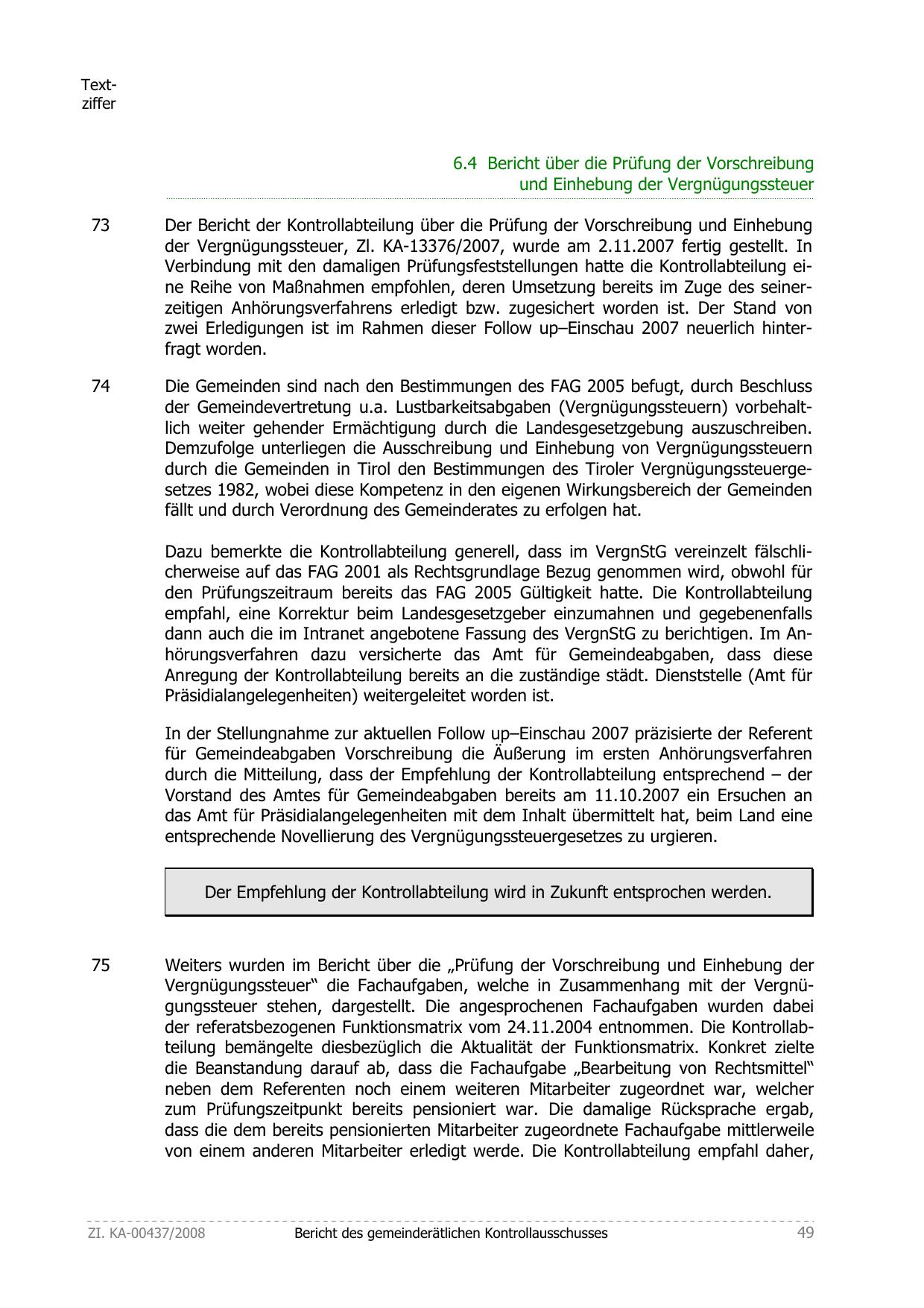 dann auch die im Intranet angebotene Fassung des VergnStG zu berichtigen. Im Anhörungsverfahren dazu versicherte das Amt für Gemeindeabgaben, dass diese
